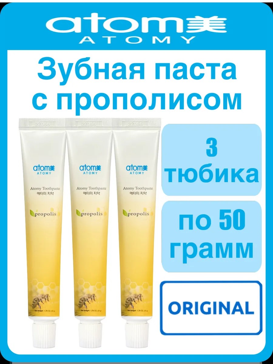 Atomy Зубная паста Атоми с прополисом, 3 тубы по 50 гр