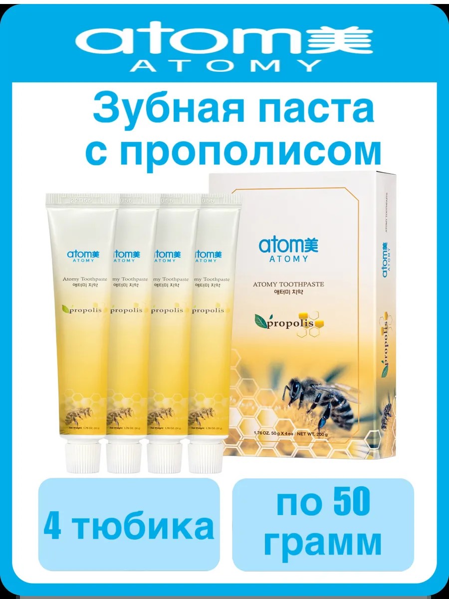 Atomy Зубная паста Атоми с прополисом, 4 шт по 50 гр