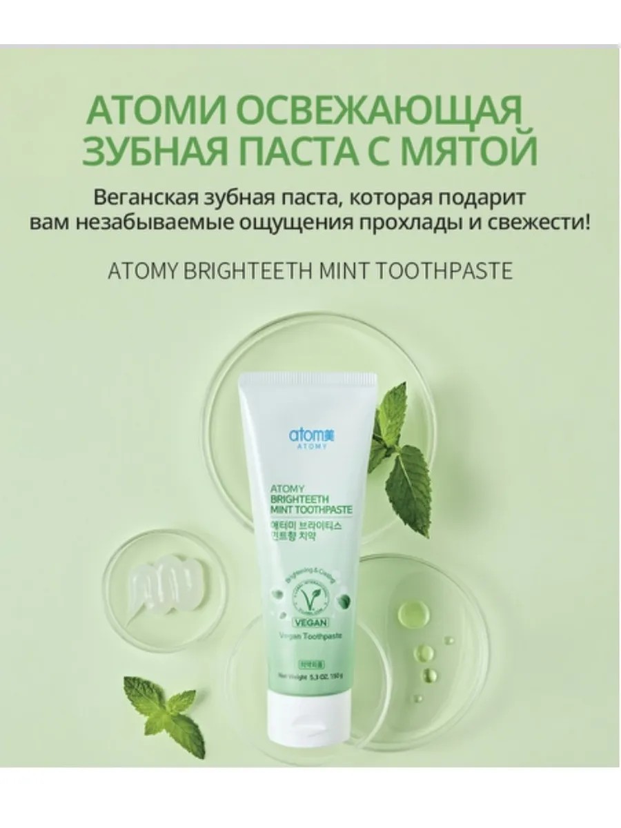 Освежающая зубная паста с мятой от Атоми (Atomy) – это высококачественный продукт из Кореи, который обеспечивает свежее дыхание, отбеливание и предотвращение образования зубного камня.