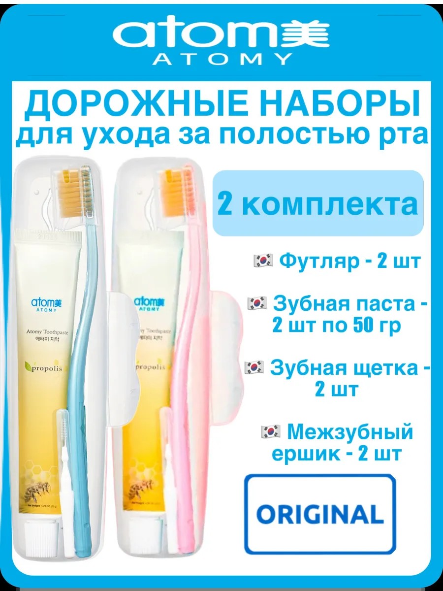 Atomy Дорожный набор Атоми 2 шт: зубная паста, щетка, ёршик
