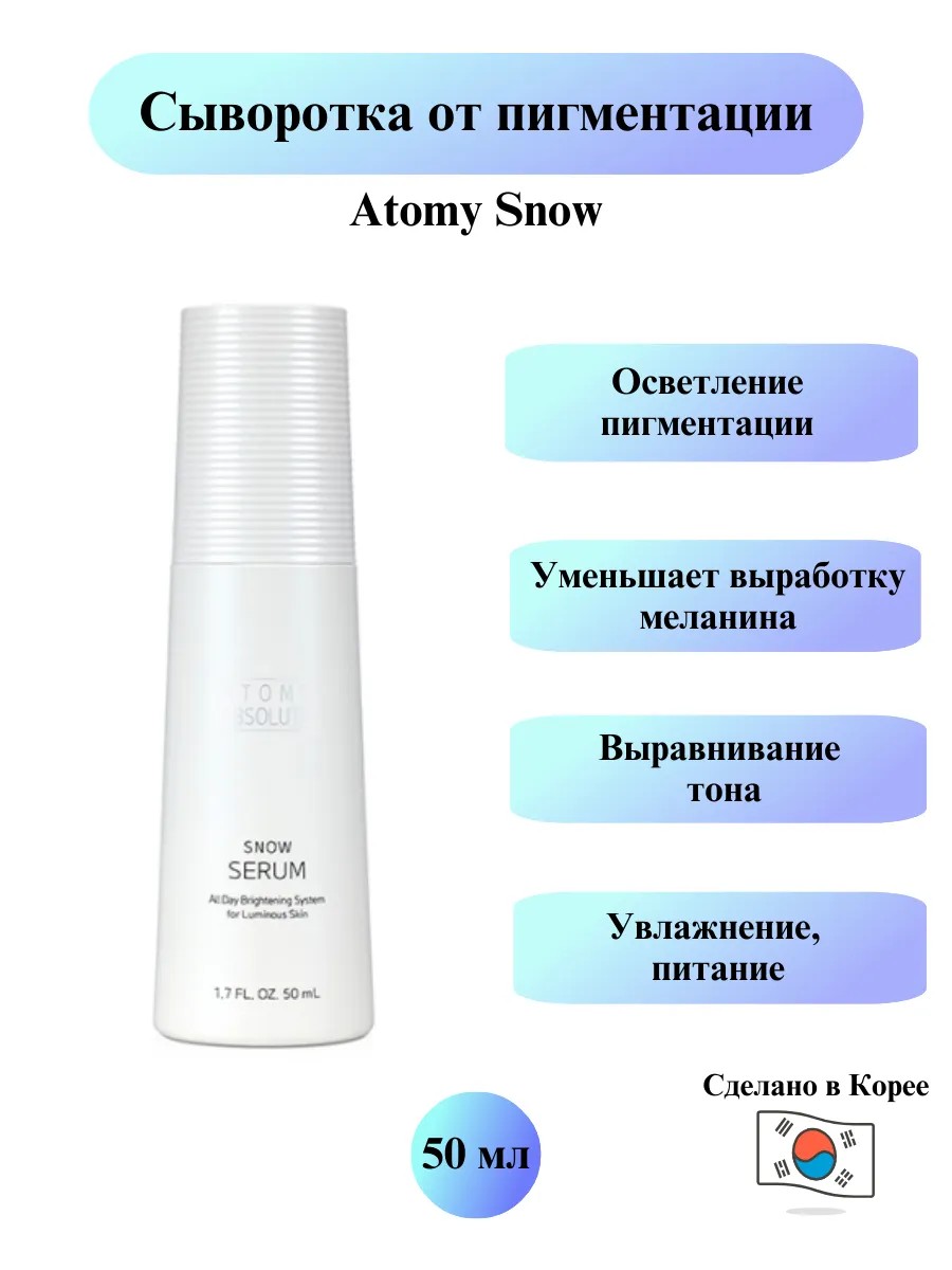 Откройте для себя секрет безупречной кожи с сывороткой Snow от Atomy – вашим надежным помощником в борьбе с пигментацией и неровным тоном лица.