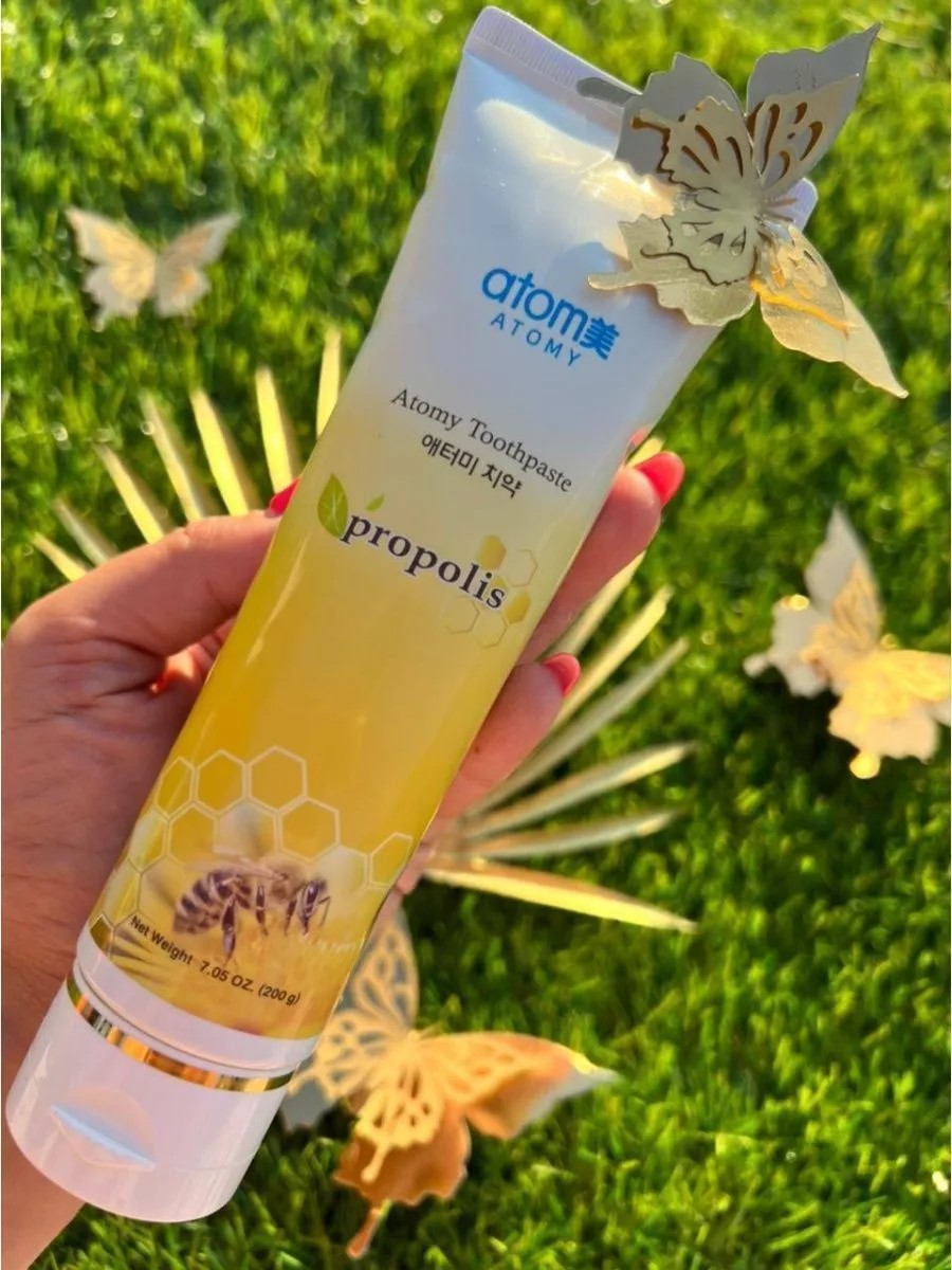 Каждый раз, используя зубную пасту Atomy с прополисом и зеленым чаем, можно быть уверенным в надежной защите и уходе за полостью рта.