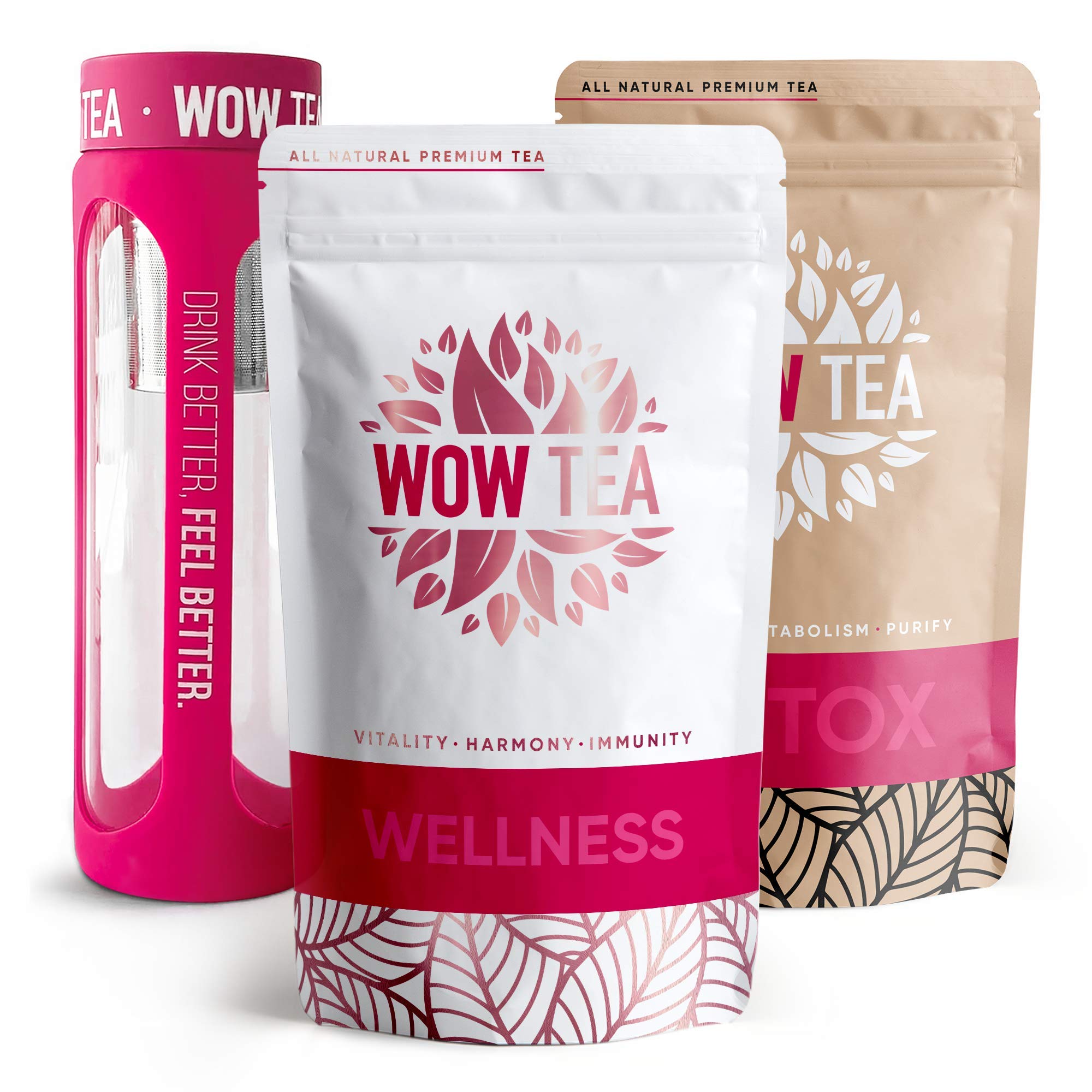 ATOP LLC WOW TEA Cleansing set Detox 21 days of tea Fat Burning Tea for Weight Loss Best Organic Herbal Tea for Detox and Weight Management Brewing group bottle 300g Made in EU Detox & Wellness Pink Bottle Detox & Wellness