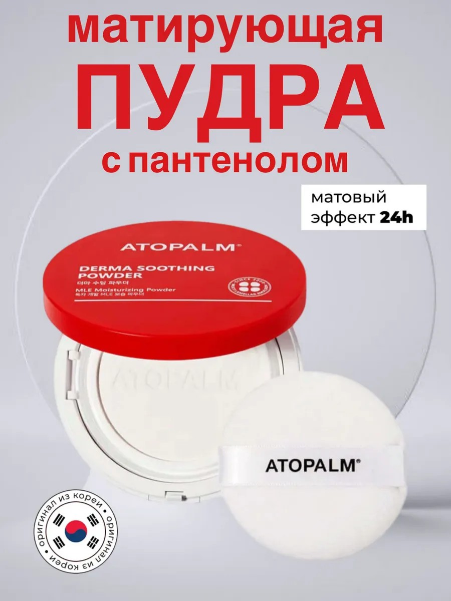 Atopalm Derma Soothing Powder, a mattifying powder with panthenol, absorbs excess sebum and reduces oiliness throughout the day, leaving a smooth, velvety finish. It soothes irritation, relieves itching and redness, and dries out inflammation. The hypoallergenic formula is suitable for sensitive skin. Contains kaolin, panthenol, phytosqualane, and bamboo extract.