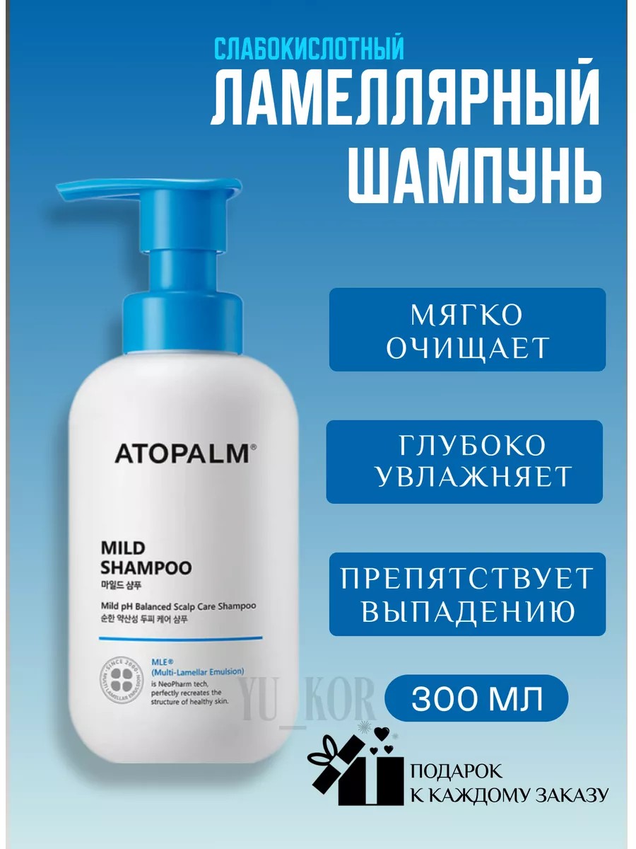 Слабокислотный ламеллярный шампунь Atopalm Mild Shampoo предназначен для деликатного ухода за сухой и чувствительной кожи головы. Мягко очищает от всех загрязнений, удаляет излишки кожного сала и пыль, не провоцирует сухости и шелушений. Имеет показатель pH 4.5-6.5. Содержит пантенол, масло виноградных косточек, жожоба, подсолнечника, камелии, биотин и токоферол.