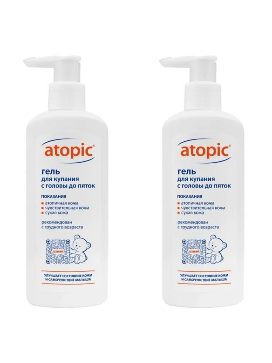 Гель для купания с головы до пяток Atopic 2 штуки по 250 миллилитров.