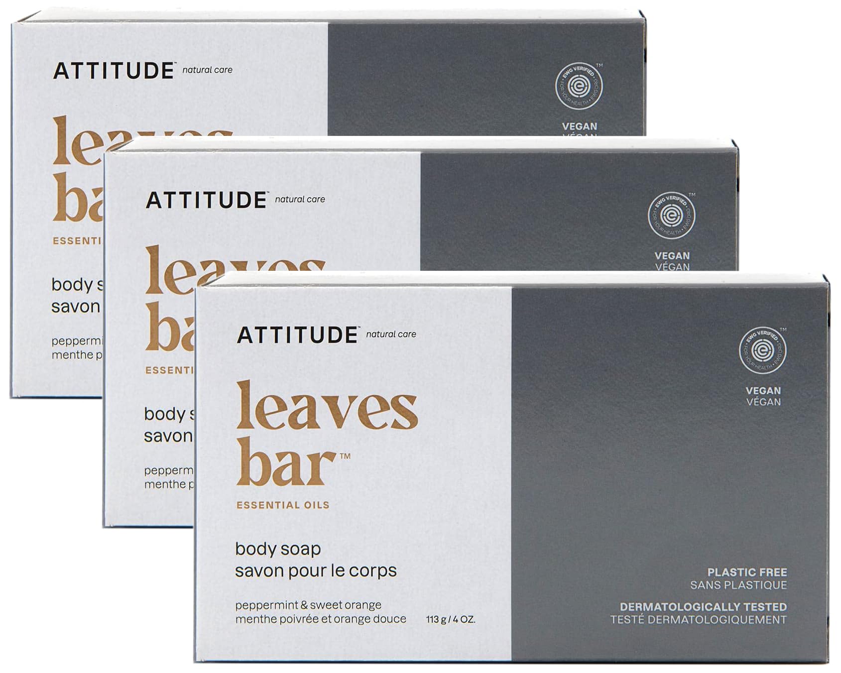 ATTITUDE Bath and Shower Body Soap Bar EWG Verified Plastic-free Plant and Mineral-Based Ingredients Vegan and Cruelty-free Personal Care Products Orange Cardamom 4 Ounces (Pack of 3)