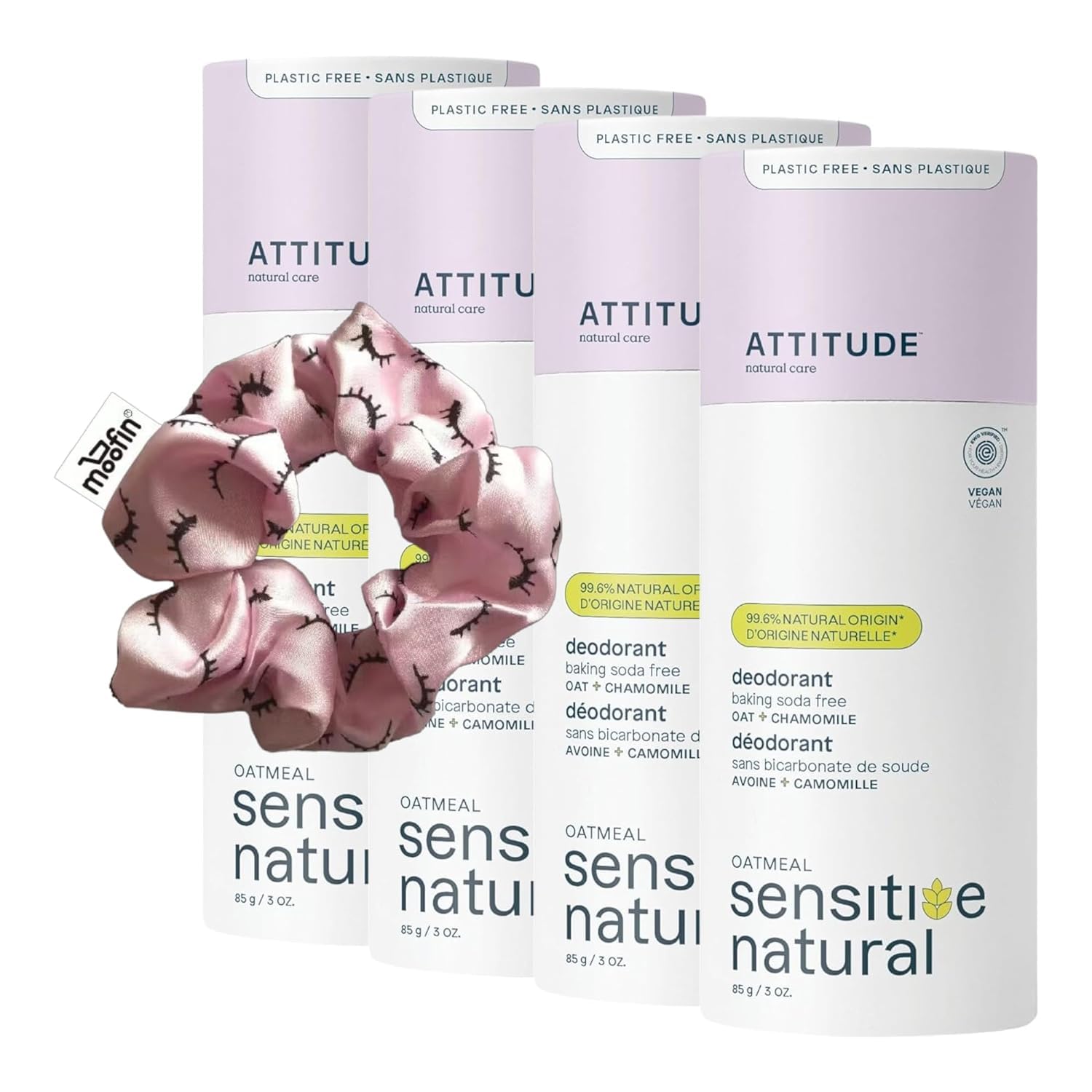 Attitude Deodorant Women Baking Soda Free Deodorant - 3oz Aluminum Free Baking Soda Free Deodorant for Women - Sensitive Skin Deodorant with Oatmeal & Chamomile for All Day Protection with Moofin Hai