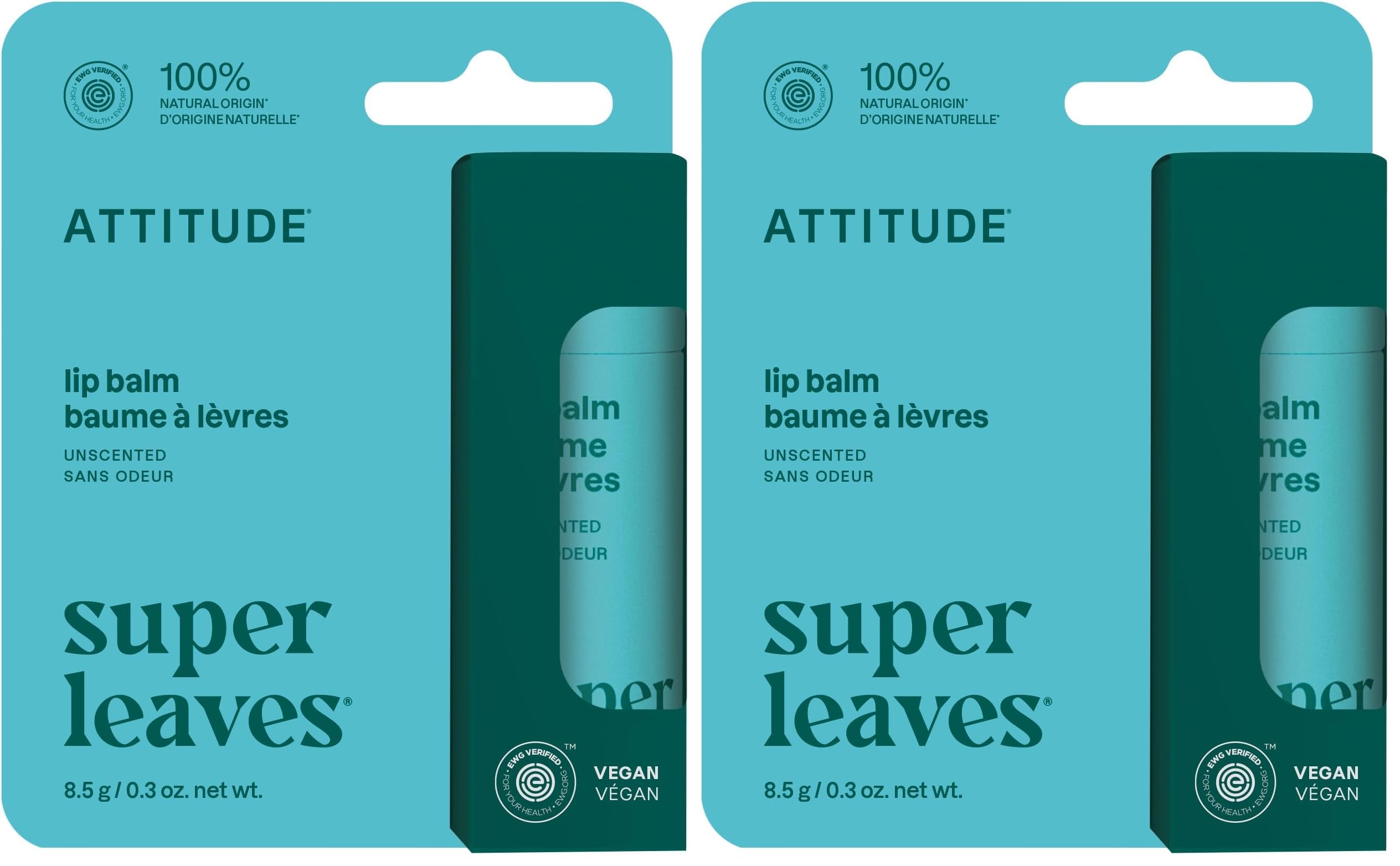 ATTITUDE Plastic-free Lip Balm, EWG Verified Plant- and Mineral-Based Ingredients, Vegan and Cruelty-free Personal Care Products, Unscented, 0.3 Oz (Pack of 2)