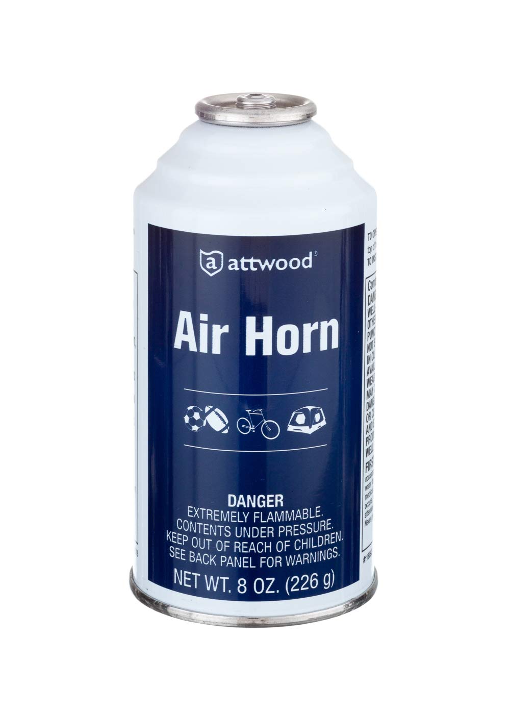 Air horn refill can 118089-7. 8 ounce can. Screws on to your airhorn, Great for boating, biking, hiking, camping and sports enthusiasts. Keep a spare on board the boat in case of emergency. Attwood develops high value, engineered marine products to make life on the water easier to enjoy. Made to meet the demands of boat builders and distribution partners, our products are extensively tested on-site in our lab to provide worry-free boating under all conditions.