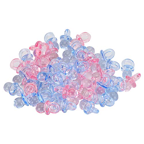 Specification: Item type: Acrylic pacifier optional style: transparent pink + blue, monochrome mixing, transparent color mixing specification: 100 x acrylic pacifier: acrylic Use: birthday party baby baptism pacifier toy Size: approx. 21 x 12 mm/0.8 x 0.5 inches Package list: 100 x acrylic pacifier