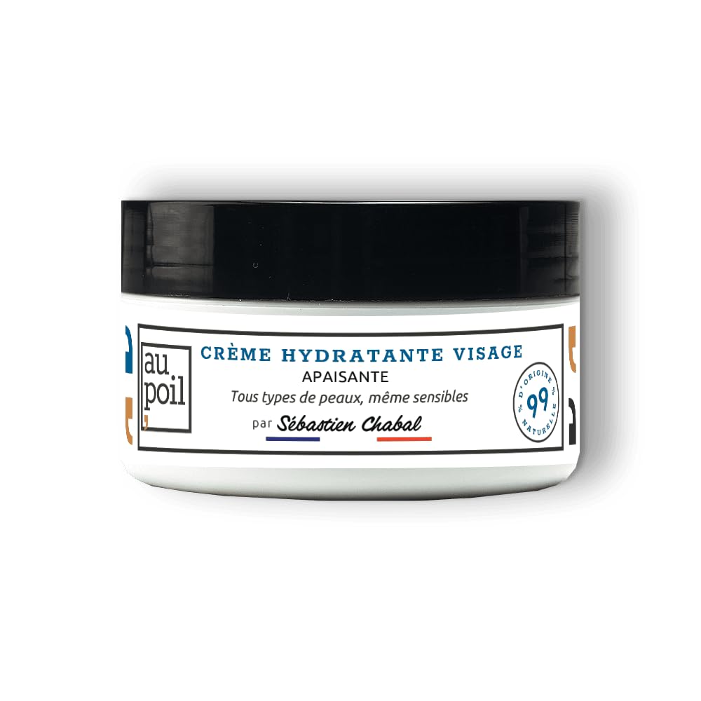 Au Poil Soothing Moisturizing Cream is a post-shave treatment. It hydrates the skin after shaving and reduces tightness and redness. Repairing and regenerating, its texture is non-greasy and non-sticky. Its fresh musk scent, present in all products in the range, is the signature fragrance of the Au Poil brand by Sébastien Chabal. Made in France by Compagnie Européenne des Parfums. INGREDIENTS Aqua (water), Caprylic capric triglyceride, glycerin, arachidyl alcohol, sclerotium gum, hydrogenated vegetable oil, sodium levulinate, behenyl alcohol, xanthan gum, glyceryl caprylate, sodium anisate, arachidyl glucoside, parfum (fragrance), citric acid, sodium benzoate, sodium hydroxide, limonene, linalool, citral, geraniol, citronellol. SAFETY WARNING Keep out of reach of children. Do not use for any purpose other than that for which it is intended. See moreContents: 75ml jar. Fresh Musk scent, the signature fragrance of the Au Poil brand by Sébastien Chabal. Made in France by Compagnie Européenne des Parfums. On previously rinsed and dried skin, apply a small amount of aftershave moisturizing cream. Try Au Poil Facial Moisturizing Cream it soothes tightness after shaving and gently hydrates the skin without leaving a greasy finish. 99 of the total ingredients are of natural origin. Sébastien Chabal, the real deal! "I created AU POIL to meet my own needs, but also those of most men: simplicity, speed, effectiveness! For me, it was more than important that this range be respectful in its product composition and aesthetically break away from the norm. I'm proud of the result, and you?"AU POIL la Crème hydratante visage apaisante pour Homme Fraicheur de Musc par Sébastien ChabalDESCRIPTION DU PRODUIT DESCRIPTION DU PRODUIT La crème hydratante apaisante Au Poil est un soin post-rasage. Elle hydrate la peau après le rasage et limite la sensation de tiraillement et les rougeurs. Réparatrice et régénérante, sa texture est non grasse et non collante. Sa senteur fraîcheur de musc, présente dans l'ensemble des produits de la gamme, est la signature olfactive de la marque Au Poil par Sébastien Chabal. Fabrication française par la Compagnie Européenne des Parfums. INGRÉDIENTS Aqua (water), Caprylic capric, triglyceride, glycerin, arachidyl alcohol, sclerotium gum, hydrogenated vegetable oil, sodium levulinate, behenyl alcohol, xanthan gum, glyceryl caprylate, sodium anisate, Arachidyl glucoside, parfum (fragrance), citric acid, sodium benzoate, sodium hydroxide, limonene, linalool, citral, geraniol, citronellol. AVERTISSEMENT DE SÉCURITÉ Tenir hors de portée des enfants. Ne pas utilliser pour un usage autre que celui pour lequel il est destiné. Voir plusContenu : pot de 75ml. Senteur Fraîcheur de Musc, signature olfactive de la marque Au Poil par Sébastien Chabal. Fabrication française par la Compagnie Européenne des Parfums. Sur une peau au préalable rincée et séchée, appliquer une noisette de crème hydratante après-rasage. Adoptez la Crème Hydratante visage Au Poil, elle apaise les tiraillements liés au rasage et hydrate la peau en douceur sans laisser de fini gras. 99 du total des ingrédients est d'origine naturelle. Sébastien Chabal , le vrai ! "J'ai créé AU POIL pour répondre à mes propres besoins mais aussi ceux de la majorité des hommes : simplicité, rapidité, efficacité ! Pour moi, il était plus qu'important que cette gamme soit respectueuse dans la composition de ses produits et sorte esthétiquement des sentiers battus. Je suis fier du résultat, et vous ?".