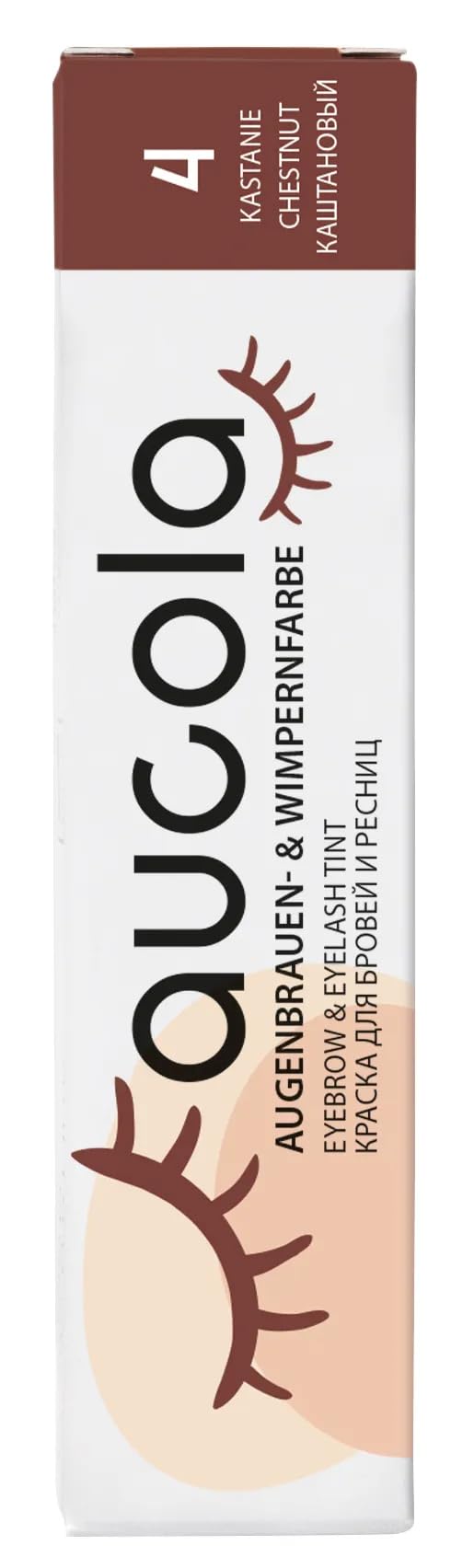 Aucola Eyebrow and eyelash tint 8 radiant shades mixable intensive coverage lasting up to 6 weeks creamy consistency volumizing 4 chestnuts 15 ml