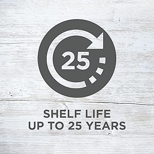 | Shelf Life | Up to 25 years (majority of meal pouches up to 25 years; bananas up to 10 years) | Up to 30 years (majority of bulk pails up to 30 years; some products such as eggs, bananas, and pancake mix up to 10 years) | Up to 30 years (majority of cans up to 30 years; some products such as eggs, creamy soups and bread mixes up to 10 years) | Up To 30 Years (Majority Of Cans Up To 30 Years; Some Product Such As Eggs, Creamy Soups And Some Bakery Mixes Up To 10 Years) | Up to 25 years (majority of meal pouches up to 25 years; bananas up to 10 years) | Up to 3 years (based on water source and storage conditions) |
