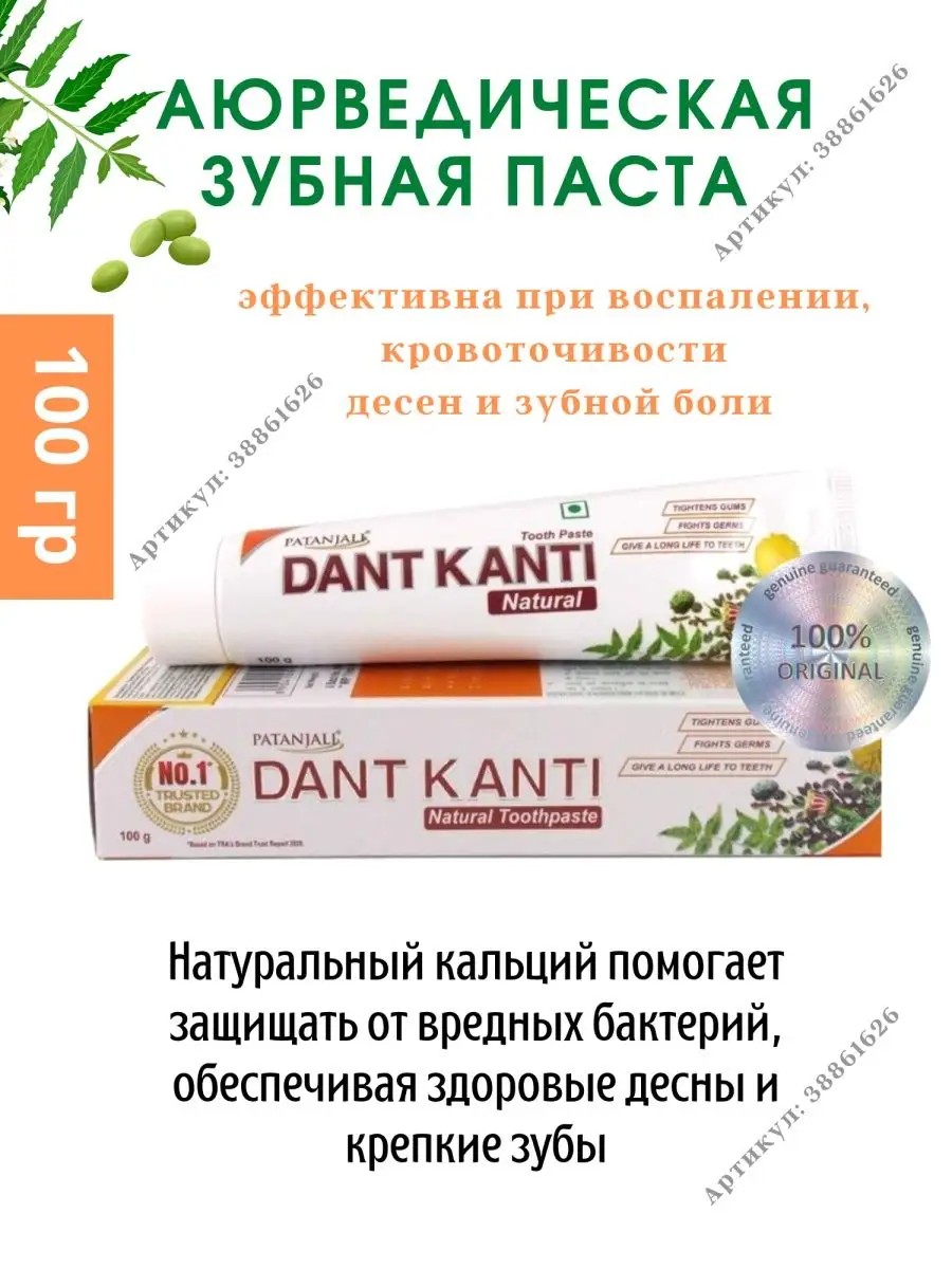 Аюрведическая уникальная зубная паста, которая обеспечивает полноценную и длительную защиту и уход за дёснами и зубами. Зубная паста Dant Kanti Хорошо борется с инфекциями, глубоко очищает зубы и дёсны, убирает кровоточивость десен, эффективно защищает зубы в течение длительного времени от бактерий и неприятного запаха, делая их здоровыми и сильными. Зубная паста полезна при гингивите, зубной боли, неприятном запахе изо рта, кровоточивости десен и многих стоматологических проблемах. Широкий ассортимент зубной пасты Дант Канти удовлетворит любого, даже самого изысканного клиента . Приятный вкус, запах, безупречный состав, освежающий эффект всё это не оставит Вас равнодушными. Данная зубная паста является натуральным продуктом без вредных химических веществ и рекомендуется для использования людьми всех возрастов, как взрослым, так и детям от 6 лет!**Данная зубная паста в большинстве случаев не имеет фальгализированной мембраны.**. Обратите внимание - первая строка это номер партии, ВТОРАЯ СТРОКА ДАТА ПРОИЗВОДСТВА. К дате производства следует прибавить то количество месяцев, которое указано на упаковке с обратной стороны.