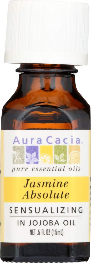 Aura Cacia Pure Aromatherapy 100% Pure Essential Oil Jasmine Absolute (in Jojoba Oil) Sensualizing 0.5-Ounces (Pack of 2)