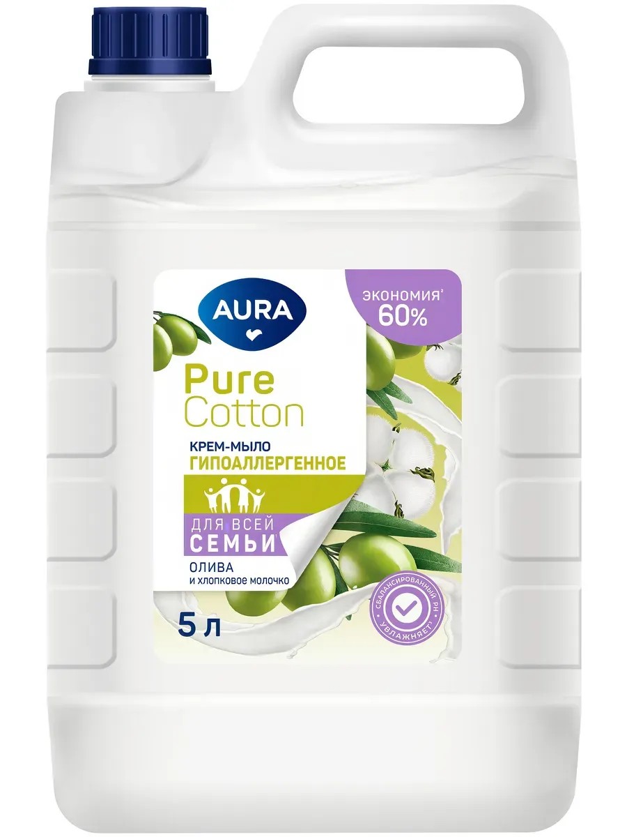 Aura Крем-мыло Pure Cotton, гипоаллергенное, олива, 5 л