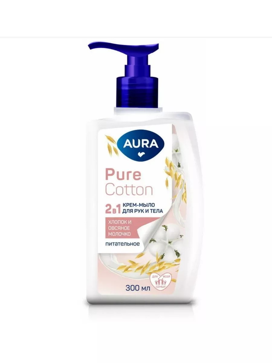 Aura. Жидкое мыло 2в1 для рук и тела Pure Cotton Хлопок/овсяное молочко, 300 мл.