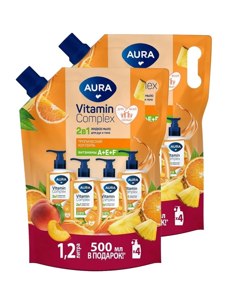 Aura Жидкое мыло 2в1 Тропический коктейль 1200мл 2шт