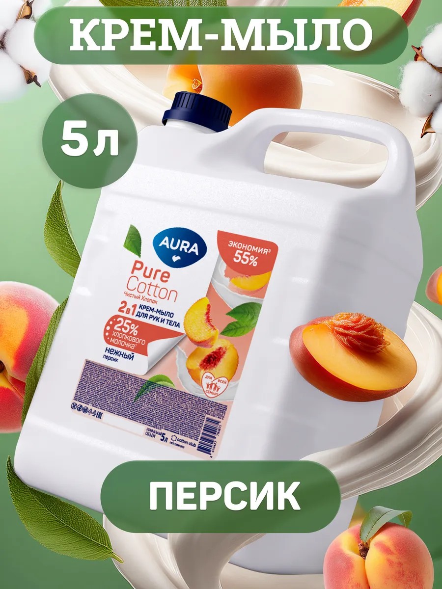 Aura Жидкое мыло для рук и тела 5л персик и хлопковое молочко