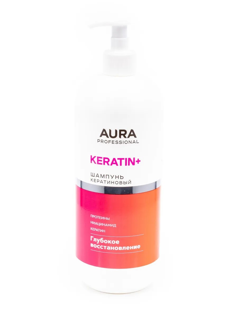 Aura / Аура Professional Шампунь кератиновый глубокое восстановление для всех типов волос, с протеинами, кератином и ниацинамидом, 1л / уходовая косметика.