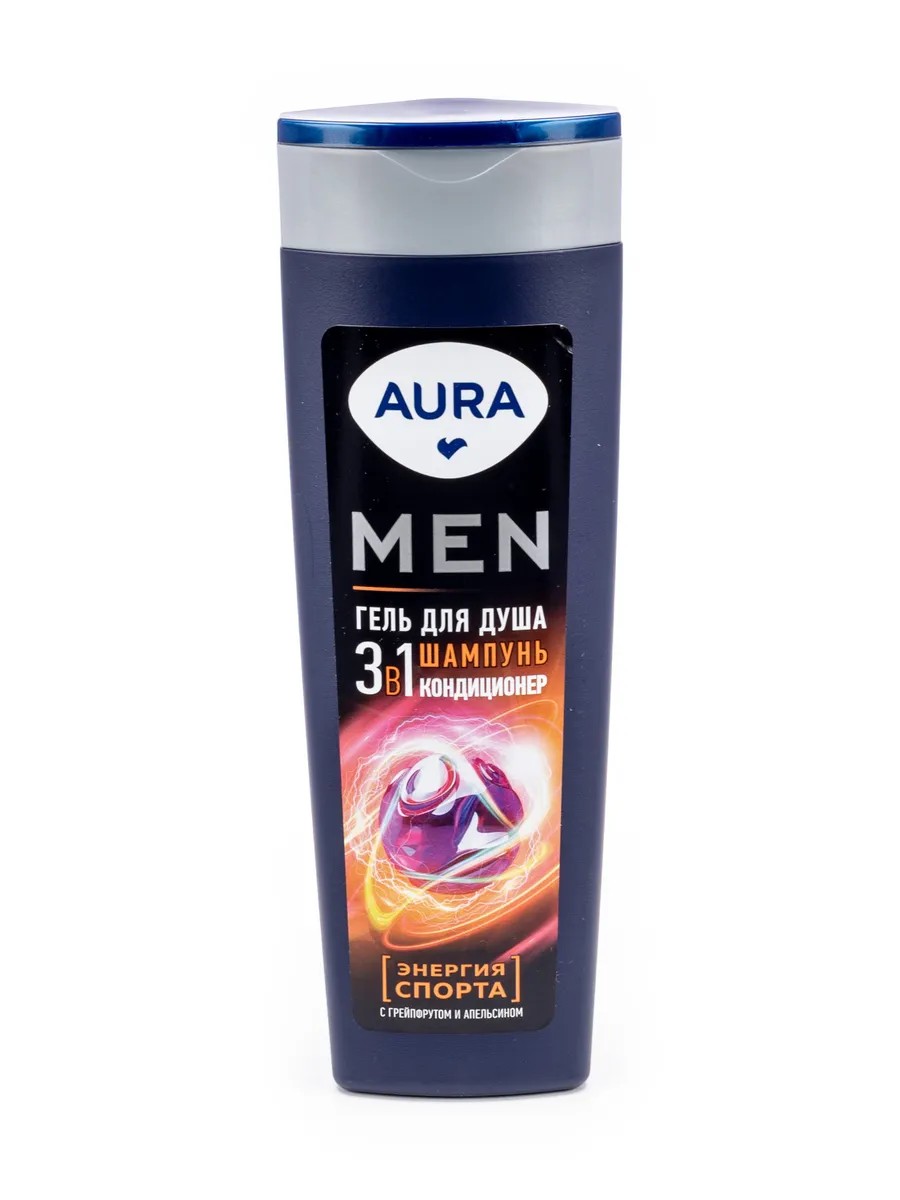 Aura / Аура Гель для душа мужской 3в1 Энергия спорта с экстрактами грейпфрута и апельсина 380мл / очищающее средство для тела.