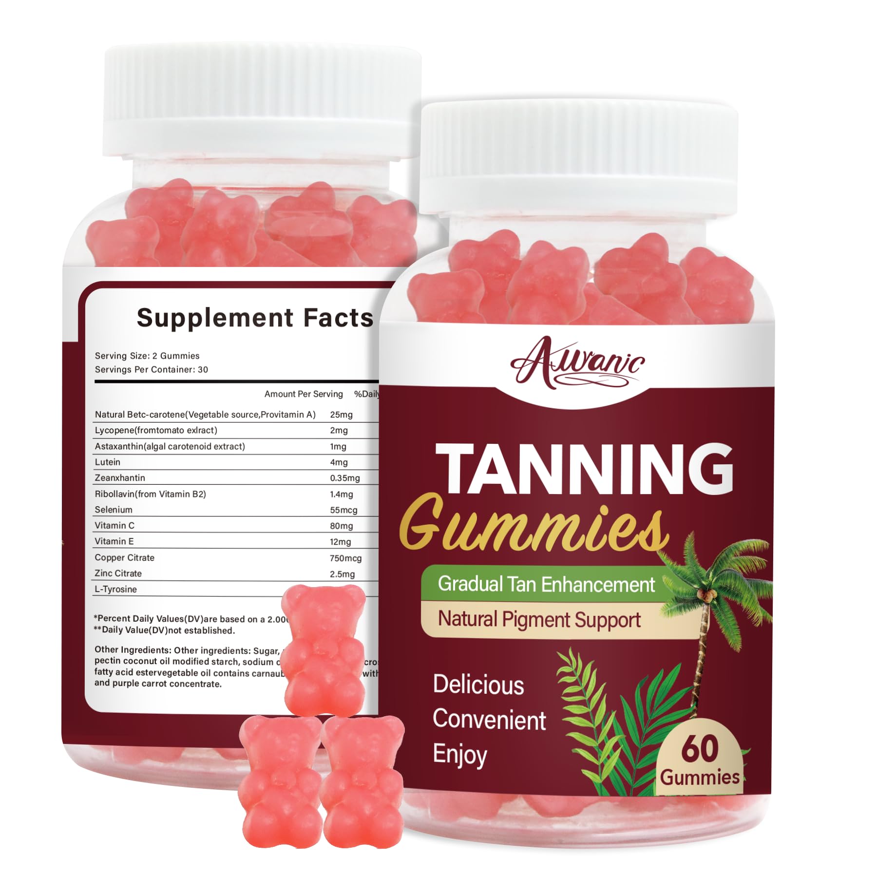 Visually Appealing Design: Our Tanning Gummies don't just taste great they also look enticing. The gummies come in an eye - catching shape and color that adds to their overall allure. This aesthetically pleg design makes them more than just a supplement they're a product that you'll be happy to display and consume. It's a small touch that makes the entire experience more enjoyable. Portable and Convenient Packaging: Our Tanning Gummies come in a sleek package. The container is compact enough to fit in your purse, beach bag, or backpack. Whether you're at home, on a tropical vacation, or simply out and about, you can easily carry your gummies with you. This portability means you can maintain your tanning support routine no matter where you are. Easy - to - Consume Format: Gone are the days of struggling with large pills or messy liquids. Our Tanning Gummies are in a convenient, bite - sized form. They're soft and easy to chew, making them suitable for people of all ages. Just pop one or two gummies in your mouth, chew, and swallow. It's a hassle - free way to support your tanning goals. Delicious Flavor: Say goodbye to unpleasant - tasting supplements. Our Tanning Gummies come in a mouth - watering flavor that makes taking them a delight. The carefully crafted taste is a perfect balance of sweetness and subtle undertones, ensuring that you'll enjoy every bite. It's a flavor that will have you reaching for more, making it easy to incorporate these gummies into your daily routine. Specialized Ingredient Blend: Our Tanning Gummies feature a unique blend of ingredients carefully chosen for their possible contributions to the tanning process. Each component, is combined in precise ratios to create a formula that may enhance your body's natural tanning response.