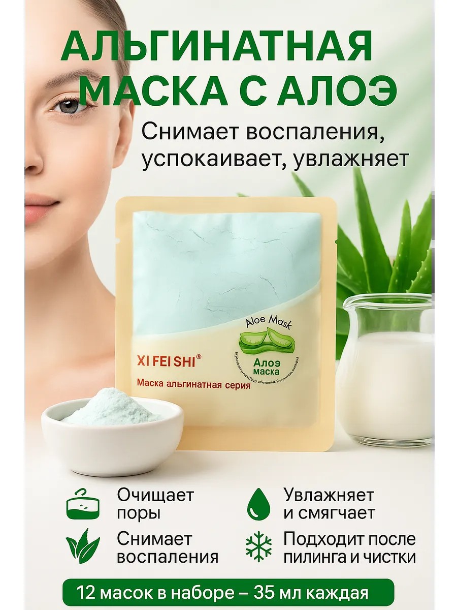 | Полное наименование товара | Альгинатная маска для лица с алоэ XI FEI SHI, 12 саше × 35 мл |