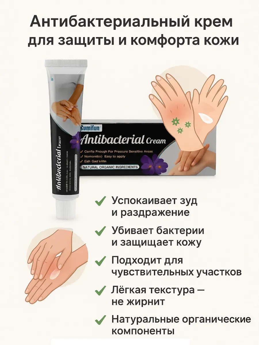 Устали от проблем с кожей, таких как зуд, раздражение или сыпь? Антибактериальный крем станет идеальным решением для вас! Этот китайский продукт подходит как для женщин, так и для мужчин, обеспечивая надежную защиту и уход за кожей лица, рук и тела. Предназначен для ухода за кожей, особенно в чувствительных зонах, идеален при раздражении, зуде, сыпи и других кожных дискомфортах.