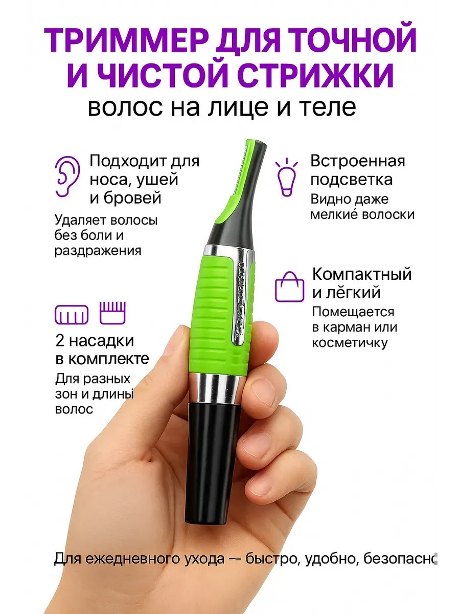 | Назначение триммера | для бровей; универсальный; для носа и ушей |