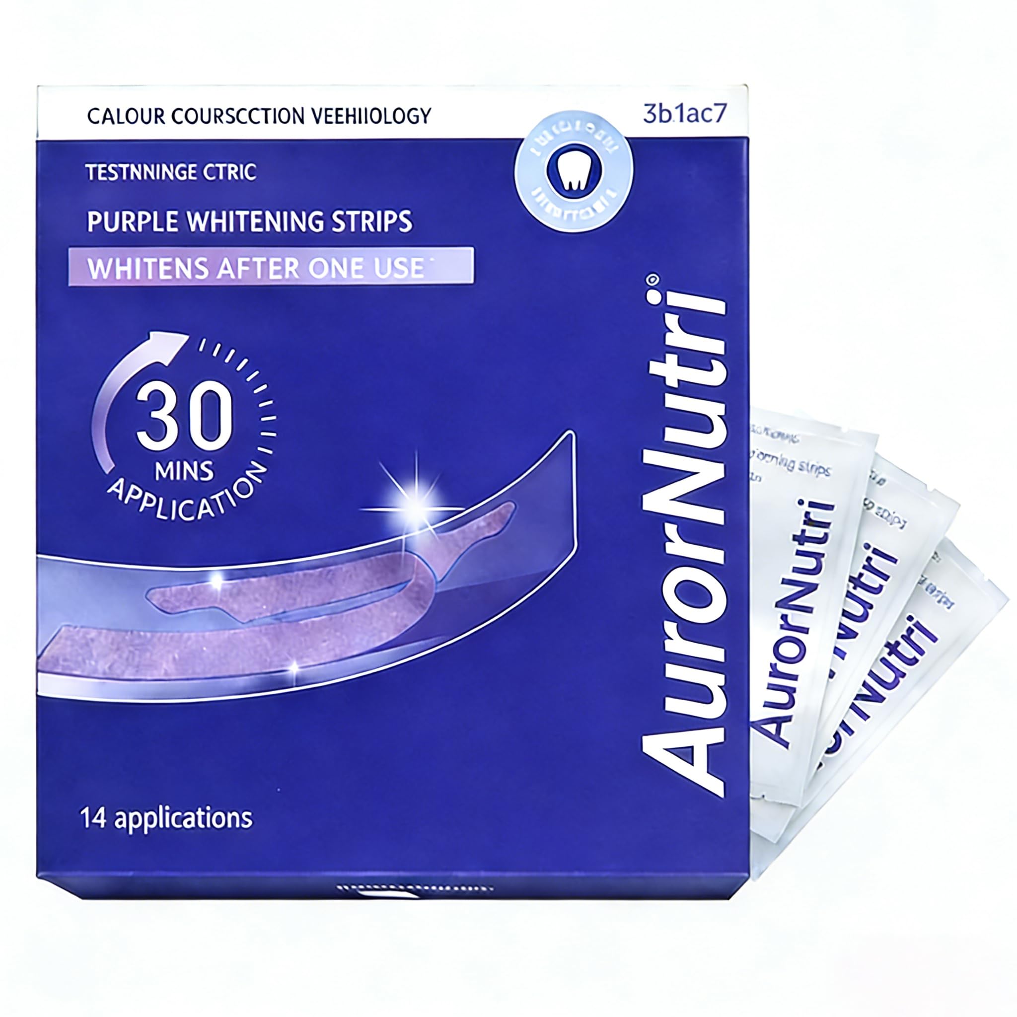 AurorNutri Purple Teeth Whitening Strips - Enamel Safe and Sensitive Teeth Whitening Strips 14 Treatments Remove Yellow Stain Combining Whiten Theeth