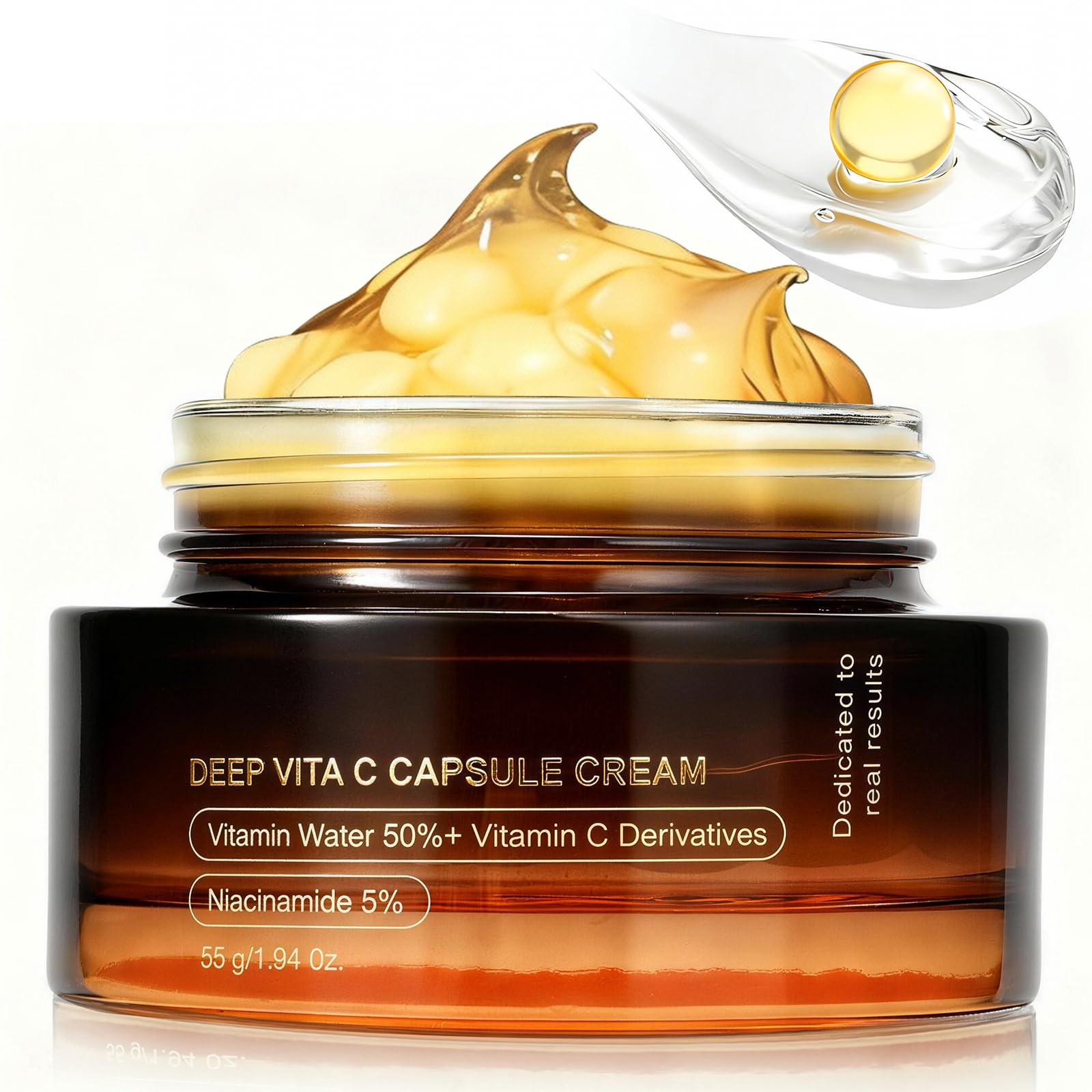 Easy to Use: Comes with a small spoon for convenient dispensing. Adjust the number of capsules for morning and evening use based on your skin condition. If you have oily skin, reduce the amount of Vitamin C capsules if you have dry skin, increase the amount of Vitamin C capsules. For first-time use, perform a patch test. Suitable for All Skin Types: This lightweight, non-greasy formula absorbs effortlessly into skin, making it gentle enough for sensitive skin and suitable for dry, oily, or combination complexions. With continued use, your skin will become as smooth as a freshly peeled egg. Lightweight Texture: This night cream features a harmoniously balanced formula combining a gel texture with vitamin C capsules. It glides on smoothly, providing refreshing hydration that absorbs quickly without weighing down the skin. Suitable even during breakout periods. Multiple Active Ingredients: The Vitamin C essence inside provides antioxidant benefits and promotes collagen production. Niacinamide combats free radicals and reduces pigmentation. Urea softens keratin proteins in the stratum corneum, allowing your skin to reveal a natural glow. Encapsulated for Maximum Freshness: This moisturizing cream employs gel-encapsulation technology to preserve vitamin C capsules, ensuring stable retention of the vitamin C essence within the capsules. It addresses multiple skin concerns and contains 5 niacinamide to intercept free radical damage, repair signs of aging, and reduce wrinkles.
