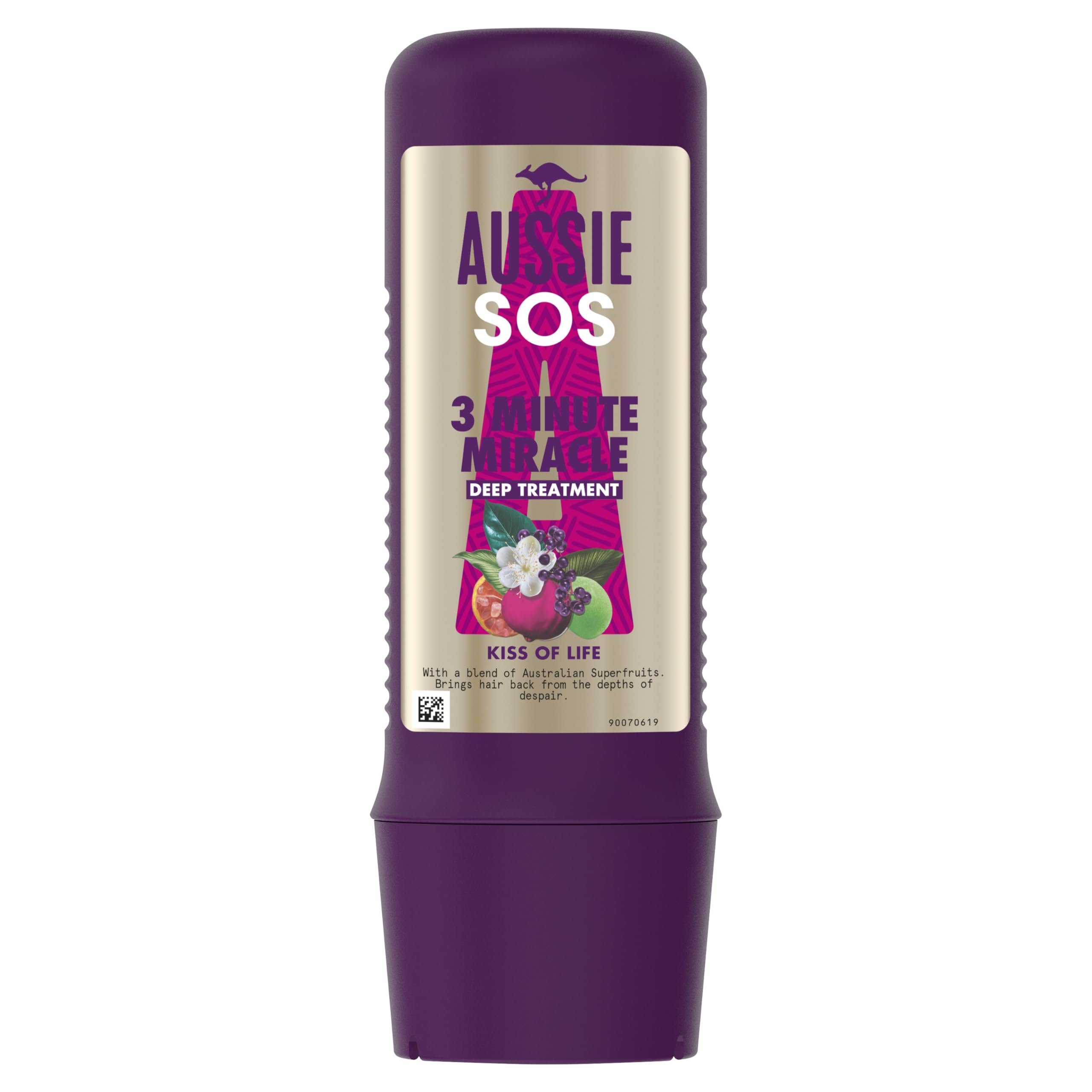 Save me now! With Australian superfruits, Aussie 3 Minute Miracle SOS Deep Treatment is the ultimate nourishing hair treatment for dry, damaged, and dull locks. INGREDIENTS Aqua, Stearyl Alcohol, Silicone Quaternium-26, Behentrimonium Chloride, Cetyl Alcohol, Isopropyl Alcohol, Parfum, Phenoxyethanol, Benzyl Alcohol, Sodium Benzoate, Limonene, Disodium EDTA, Glycerin, Citric Acid, Linalool, Butylene Glycol, Sodium Hydroxide, Microcitrus Australia Fruit Extract, Mannia Lanceolle Aata Leaf Extract (Backhousia Citriodora) DIRECTIONS Massage into wet hair and rinse. Bingo, your hair will be back to normal. SAFETY WARNING Avoid contact with eyes. In case of contact, rinse thoroughly with water. See moreDeep conditioning treatment with a blend of Australian superfruits. Repairs, restores, revives. Miracle 3-minute deep conditioning treatment for damaged hair. Miracle Australian superfruits, for natural hair emergencies.Aussie 3 Minute Miracle SOS Kiss Of Life Masque capillaire végétalien Traitement réparateur pour cheveux secs et abîmés Traitement réparateur avec un mélange de superaliments australiens 200 ml Ensemble shampoing et après-shampoing SOS Kiss of Life Hair Repair avec shampooing végétalien, après-shampoing pour cheveux et masque capillaire intense pour traitement des cheveux secs et abîmésDESCRIPTION DU PRODUIT DESCRIPTION DU PRODUIT Sauvez-moi maintenant ! Avec les superfruits australiens, Aussie 3 Minuts Miracle SOS Deep Treatment est le traitement capillaire nourrissant ultime pour les mèches sèches, abîmées et ternes. INGRÉDIENTS Aqua, Stearyl Alcohol, Silicone Quaternium-26, Behentrimonium Chloride, Cétyl Alcohol, Isopropyl Alcohol, Parfum, Phenoxyethanol, Benzyyl Alcohol, Sodium Benzoate, Limonene, Disodium Edta, Glycerin, Citric Acid, Linalool, Butylene Glycol, Sodium Hydroxide, Microcitrus Australia, Fruit Extract, Tast, mannia lanceolle Aata Extrait de feuille de Backhousia Citriodora MODE D'EMPLOI Massez sur cheveux mouillés puis rincez. Bingo, vos cheveux retrouveront leur forme. AVERTISSEMENT DE SÉCURITÉ Évitez tout contact avec les yeux. En cas de contact, rincer abondamment à l'eau. Voir plusTraitement en profondeur avec un mélange de superfruits australiens. Répare, restaure, ravive. Traitement réparateur en profondeur Miracle de 3 minutes pour cheveux abîmés. Superfruit miracles australiens, pour les urgences de cheveux naturels.