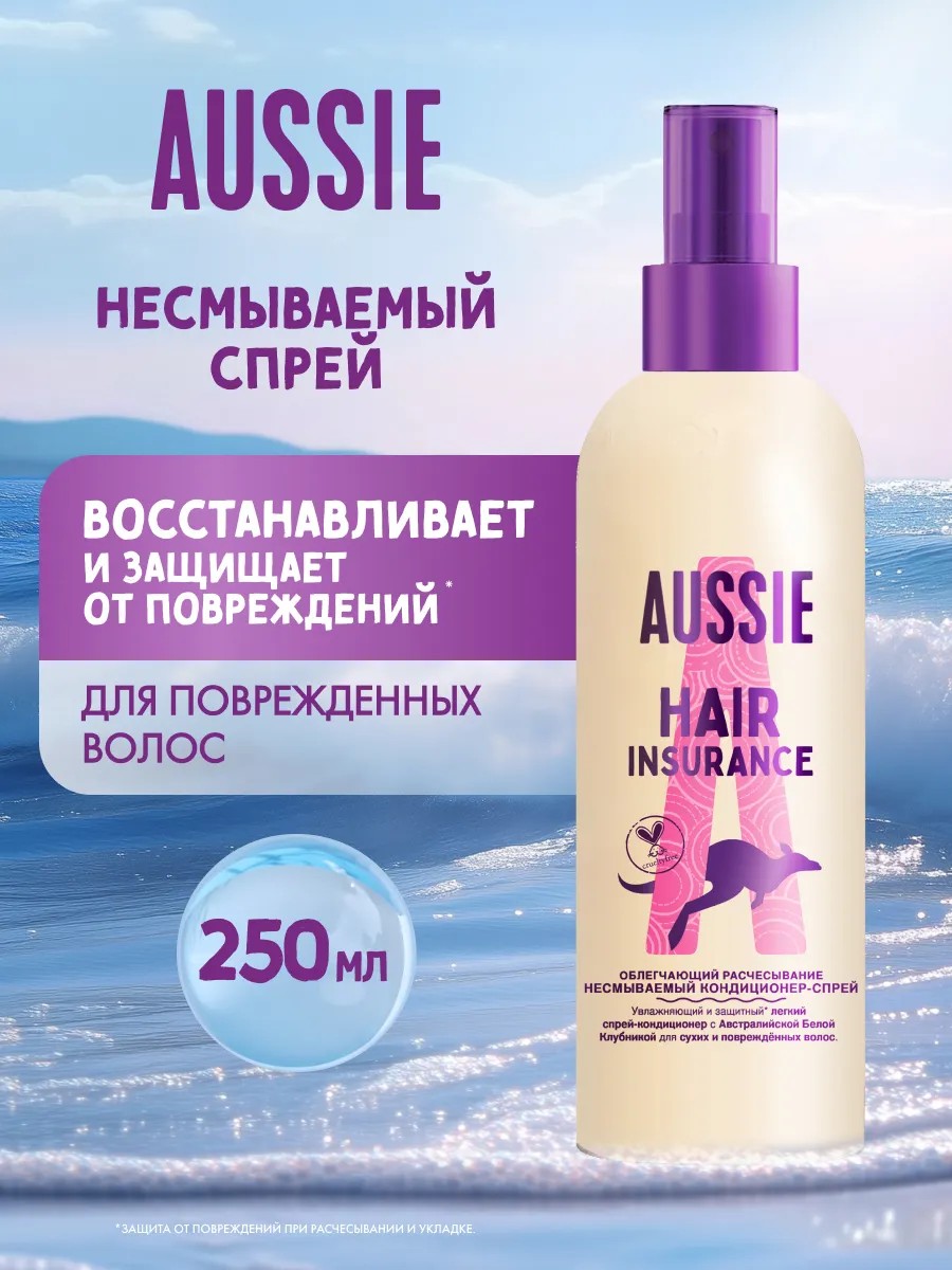 Поврежденные волосы нуждаются в серьезной любви и заботе? Без паники, Aussie бросает спасательный круг! Несмываемый спрей-кондиционер Aussie восстанавливает поврежденные волосы и защищает локоны от будущих повреждений, делая их гладкими, мягкими и блестящими. В мгновение ты получишь потрясающие, полные жизни и превосходно восстановленные волосы! Средства Aussie насыщены австралийскими ингредиентами: они растут на самом сухом континенте и имеют восхитительный аромат. Для получения WOW эффекта используй в комплексе с другими средствами коллекции.