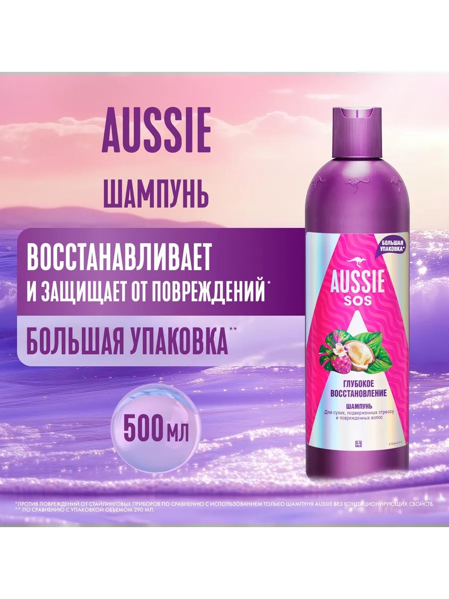 Aussie SOS Deep Repair Shampoo, For Very Damaged and Dry Hair, 500 ml. Is dry and damaged hair sending an SOS signal? Don't panic, Aussie has a lifeline! Aussie SOS Deep Repair Shampoo gently cleanses the scalp, restores stressed hair, and protects it from further damage*. SOS care will leave hair soft, smooth, and perfectly hydrated. Aussie products are enriched with Australian ingredients like white strawberry and macadamia oil: they grow on the driest continent and have a delightful aroma. For a WOW effect, use this shampoo in combination with other products from the Aussie SOS Deep Repair line, which includes a conditioner, hair mask, and heat protectant. *From styling damage compared to using Aussie shampoo without conditioning properties. Ingredients: Aqua, sodium laureth sulfate, cocamidopropyl betaine, sodium xylenesulfonate, parfum, sodium chloride, citric acid, sodium benzoate, sodium citrate, sodium salicylate, limonene, guar hydroxypropyltrimonium chloride, sodium hydroxide, tetrasodium edta, linalool, macadamia ternifolia seed oil, histidine, butylene glycol, fragaria chiloensis fruit extract; Hair type: Damaged; Effect: Restoration; Hazard class: Not hazardous; Volume: 500;