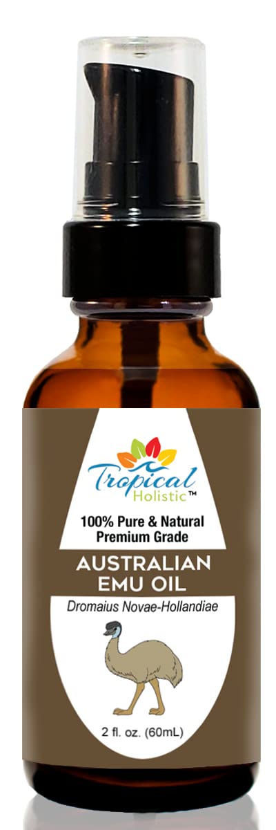 Australian 6X Refined Grade A Emu Oil 2 oz - 100% Pure Premium Natural Essential Oil by Tropical Holistic - Multipurpose Beauty Essential for Hair Face Skin Stretch Marks & Nails - Travel Size