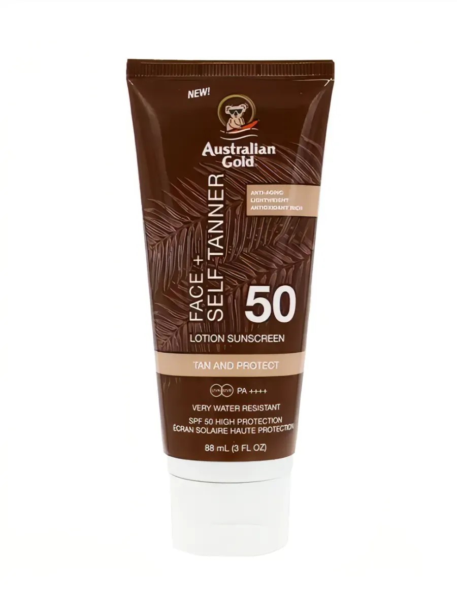 Australian Gold Лосьон для лица SPF 50, Face + Self Tanner Lotion Sunscreen