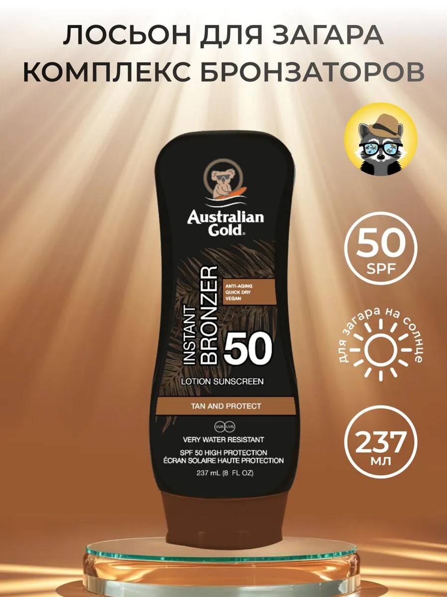 Australian Gold Lotion Sunscreen with Instant Bronzer SPF 50, лосьон