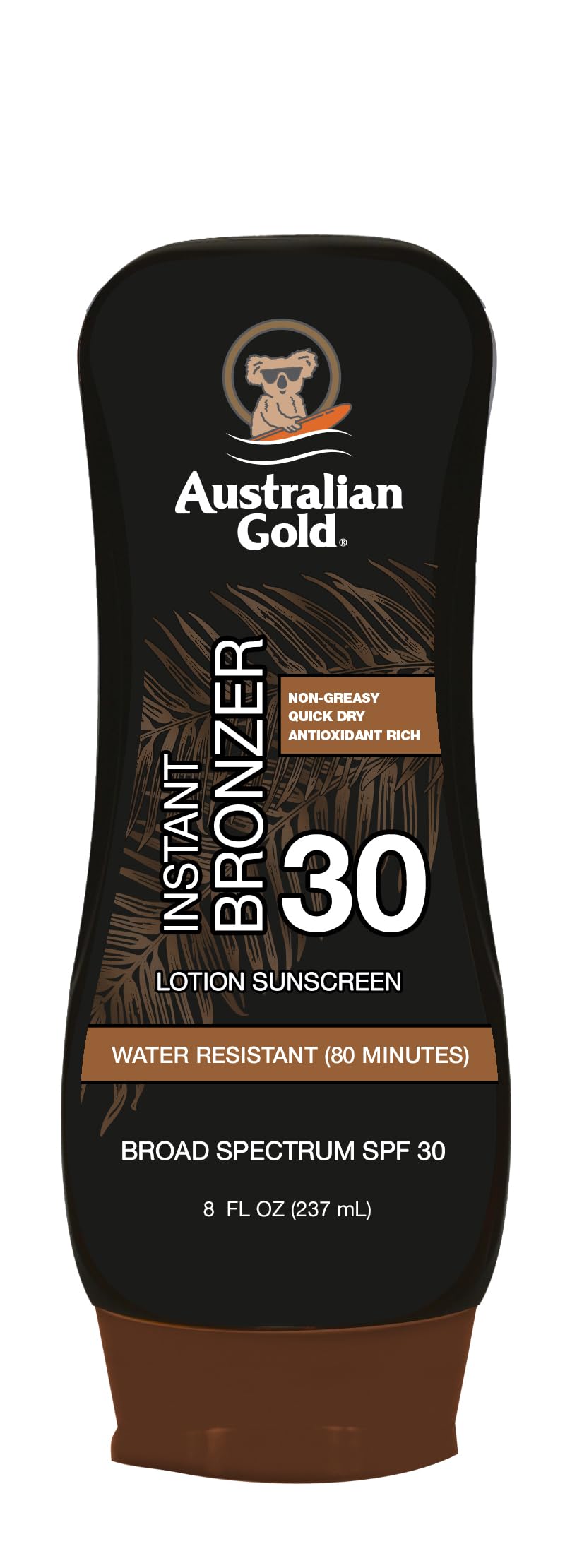 Australian Gold Sunscreen Lotion with Instant Bronzer Broad Spectrum Water Resistant Non-Greasy Oxybenzone Free Cruelty Free SPF 30 Coconut 8 Fl Oz (A70902) SPF 30 8 Ounce (Pack of 1)