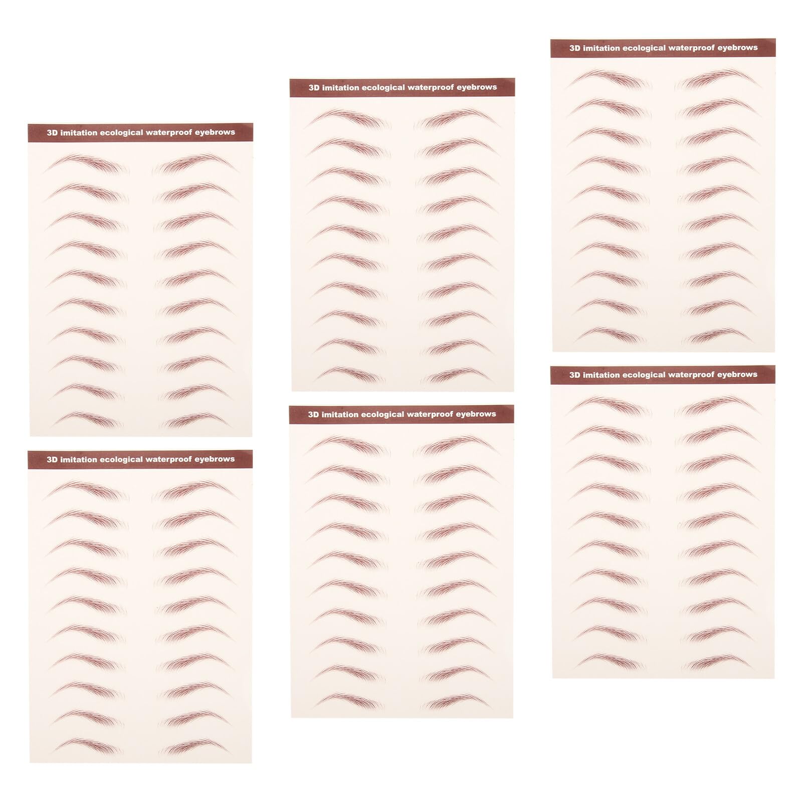 Autocollants pour sourcils effet poil à poil pack de 6 feuilles brun naturel transfert d'eau pour maquillage et entretien quotidien des sourcils