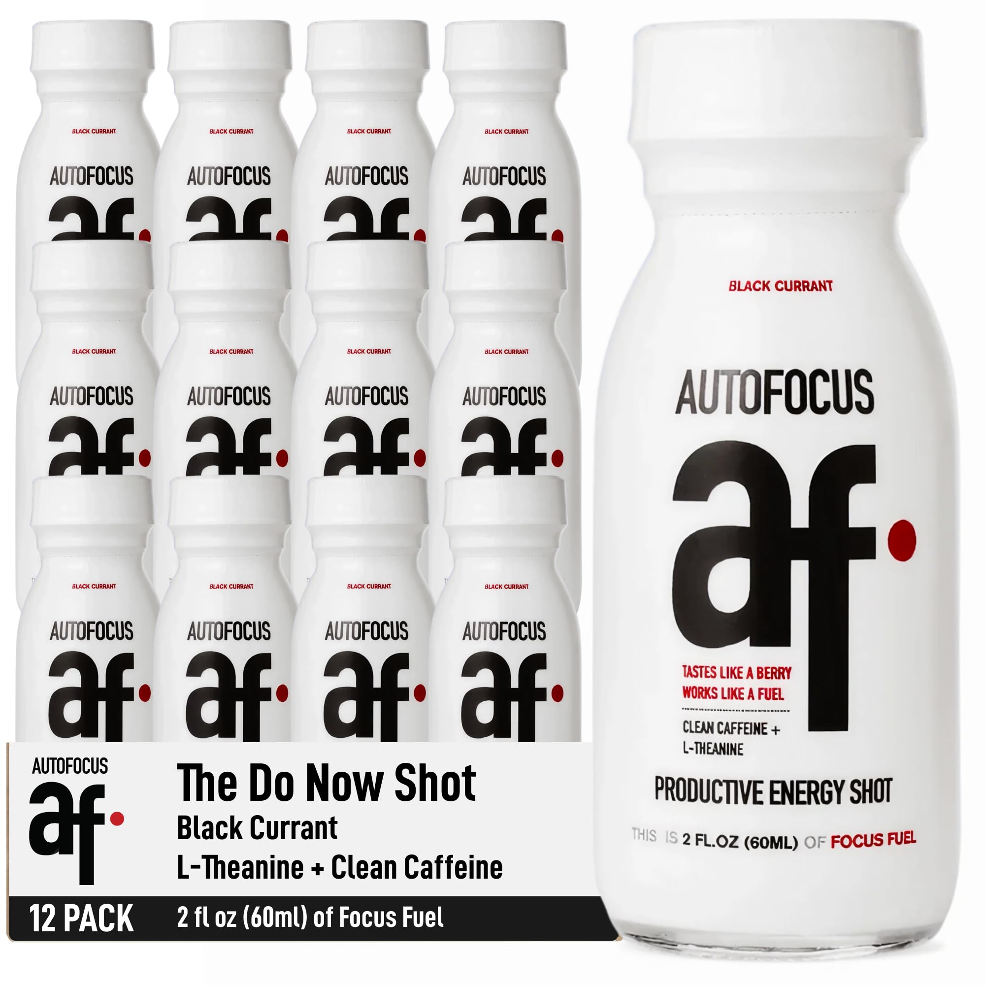 AUTOFOCUS 2oz Energy Shot – Natural Focus Shot with Coffee Fruit L-Theanine – Clean Caffeine Brain Booster – Productivity Energy Shot for Work Study – Black Currant Flavor