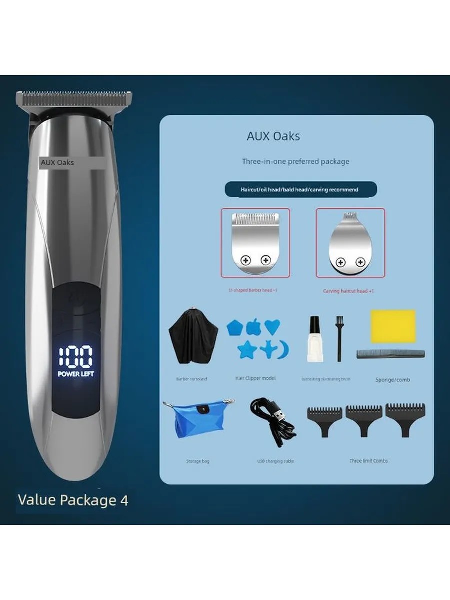 AUX-U1 Electric Hair Clipper (Silver Gray, U-Shaped and Engraved Attachments)
