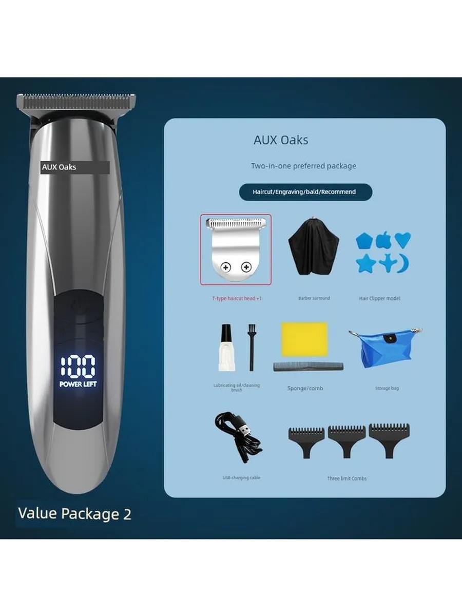 Add. Hair clipper optionsdisplay, USB charging