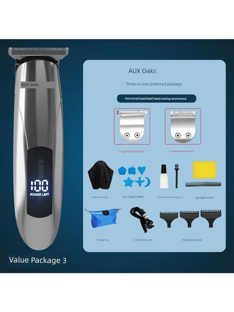 Электрическая машинка для стрижки AUX-U1 (серебристо-серая, насадки Т-образная и U-образная)