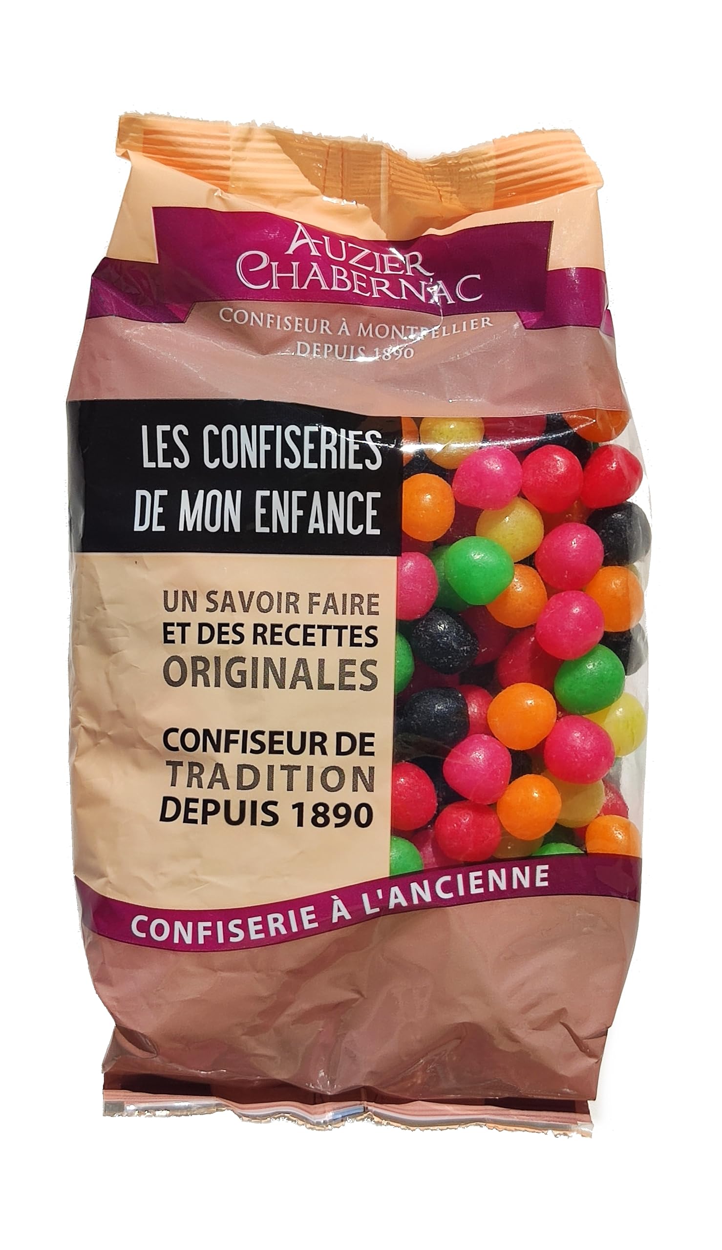 : Multicolored candies with a soft center and natural fruit flavors. FLAVORS OF YESTERYEAR. Made in France. Located a few kilometers from Montpellier, the AUZIER CHABERNAC confectionery company strives to produce, using modern methods, the same candies that made their predecessors famous. The sweets of my childhood. Generous size. THE AUZIER HOUSE: HISTORY: The AUZIER company was founded in 1923 by Léon AUZIER. At that time, there were five confectioners in Montpellier, all producing licorice, gumballs, marshmallows, and sugared almonds. They were the last successors of a guild dating back to the Middle Ages, when confectionery was closely linked to pharmacy, in a city where Jacques Cœur had introduced products from the Orient. In Montpellier, during Rabelais's time, apothecaries were constantly innovating, and students offered sugared almonds to celebrate their theses. Today, AUZIER CHABERNAC perpetuates the Montpellier tradition through its expertise and traditional recipes for vanilla paste, licorice paste, honey licorice, marshmallows, and of course, sugared almonds. TODAY: All AUZIER CHABERNAC confectionery is made according to time-honored recipes, jealously guarded for three generations of confectioners. Particular care is taken in selecting raw materials from various partners to guarantee consistent quality and satisfy discerning customers. Ingredients: Sugar, glucose syrup, wheat starch, pea starch, citric acid, natural flavorings: lemon, blackcurrant, strawberry, blueberry, peach, green apple, orange, colors: E 153, E 104, E 102-131, E 122, E 129, E 124, E 110. Lubricants: vegetable oil and carnauba wax. The colorings E 104, E 102-E 131, E 122, E 129, E 110, and E 124 may have adverse effects on activity and attention in children. Allergens: Wheat, may contain traces of egg, soy lecithin, and nuts. P.when('A').execute(function(A) { A.on('a:expander:toggle_description:toggle:collapse', function(data) { window.scroll(0, data.expander. expander[0].offsetTop-100) }) }) Instructions for use: Suitable for children aged 3 and up. Appreciate original recipes. See moreFrom 3 years old. Allergens: Wheat, may contain traces of egg, soy lecithin, and nuts. Traditional confectioner since 1890. Old-fashioned confectionery. Expertise and original recipes. Made in France in St Gély du Fesc - a few kilometers from Montpellier (34). The sweets of my childhood. Natural flavors: strawberry, lemon, peach, green apple, passion fruit, blueberry, orange essence. Multicolored balls with a soft center. 500g bag.Description du produit Des billes multicolores, au coeur tendre et aux arômes naturels de fruits. LES SAVEURS D'ANTAN Fabriqué en France. Installés à quelques kilomètres de Montpellier, le confiseur AUZIER CHABERNAC s'efforçe de produire avec les moyens d'aujourd'hui les mêmes bonbons qui ont fait la renommée de leurs prédécesseurs. Les confiseries de mon enfance. Format généreux. LA MAISON AUZIER : HISTORIQUE : La maison AUZIER a été créée en 1923 par Léon AUZIER. En ce temps là, il y avait à Montpellier cinq confiseurs qui fabriquaient tous de la réglisse, des boules de gomme, de la guimauve et des dragées. Ils étaient les derniers successeurs d'une corporation venue du Moyen-Age où la confiserie voisinait avec la pharmacie, dans une ville où Jacques Cœur avait introduit les produits d'Orient. A Montpellier, au temps de Rabelais, les apothicaires multipliaient leurs inventions et les étudiants offraient des dragées pour fêter leur thèse. Aujourd'hui, AUZIER CHABERNAC perpétue la tradition de Montpellier par son savoir faire et ses recettes traditionnelles de pâte vanillée, pâte de réglisse, réglisse au miel, guimauve et bien sûr, les dragées. AUJOURD'HUI : Toutes les confiseries AUZIER CHABERNAC sont réalisées dans le respect des recettes d'autrefois, jalousement gardées depuis 3 générations de confiseur. Un soin particulier est apporté à la sélection des matières premières, auprès des différents partenaires, afin de garantir une qualité constante, et satisfaire une clientèle de gourmands. Ingrédients Sucre, Sirop de glucose, amidon de BLE, amidon de pois, acide citrique, arômes naturels : citron, cassis, fraise, myrtille, pêche, pomme verte, orange, colorants : E 153, E 104, E 102-131, E 122, E 129, E 124, E 110. Agents de graissage : huile végétale et cire de carnauba. Les colorants E 104 E 102-E 131, E 122, E 129, E 110, E 124, peuvent avoir des effets indésirables sur l'activité et l'attention chez les enfants. Allergènes : Blé, peut contenir des traces d'œuf, de lécithine de soja et de fruits à coques. P.when('A').execute(function(A) { A.on('a:expander:toggle_description:toggle:collapse', function(data) { window.scroll(0, data.expander. expander[0].offsetTop-100) }) }) Mode d'emploi Consommation à partir de 3 ans. Savoir apprécier les recettes originales. Voir plusA partir de 3 ans. Allergènes : Blé, peut contenir des traces d'œuf, de lécithine de soja et de fruits à coques. Confiseur de tradition depuis 1890. Confiserie à l'ancienne. Un savoir faire et des recettes originales. Fabriqué en France à St Gély du Fesc - à quelques km de Montpellier (34). Les confiseries de mon enfance. Arômes naturels : fraise, citron, pêche, pomme verte, fruits de la passion, myrtille, essence d'orange. Des billes multicolores, au coeur tendre. Sac de 500g.AUZIER CHABERNAC Bonbons Roule Roule billes aromatisée aux fruits - Confiserie de Tradition : (Sac 500g : Lot de 1.)