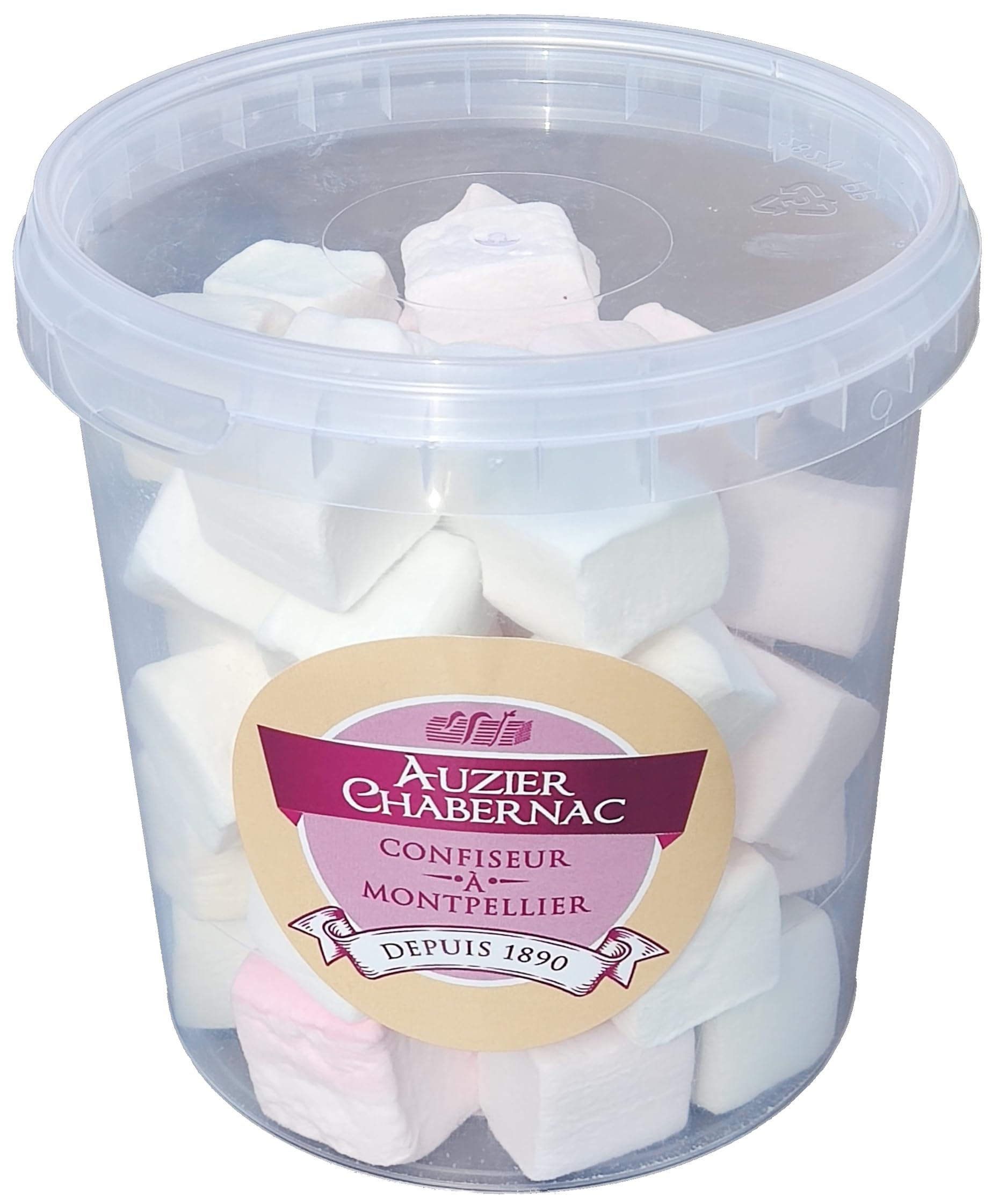 : Traditional marshmallow, with the taste of childhood. Natural flavor. No artificial colors. Marshmallow paste originated from a plant whose soothing properties were recognized in the treatment of inflammatory diseases. As one can read in "La Nouvelle Maison Rustique" (1804), "its mucilage, reduced to tablets with sugar, is admirable against coughs." Today, the marshmallow root is extinct, but Maison AUZIER CHABERNAC perpetuates the tradition of old-fashioned marshmallow, flavored with orange blossom, anise, violet, or lemon. All flavors are natural and complement more modern tastes. MAISON AUZIER: HISTORY: Maison AUZIER was founded in 1923 by Léon AUZIER. At that time, there were five confectioners in Montpellier, all of whom made licorice, gumdrops, marshmallows, and sugared almonds. They were the last descendants of a guild that originated in the Middle Ages, when confectionery and pharmacy coexisted in a city where Jacques Cœur had introduced products from the Orient. In Montpellier, during Rabelais's time, apothecaries were constantly innovating, and students offered sugared almonds to celebrate their theses. Today, AUZIER CHABERNAC perpetuates the Montpellier tradition through its expertise and traditional recipes for vanilla paste, licorice paste, honey licorice, marshmallows, and, of course, sugared almonds. TODAY: All AUZIER CHABERNAC confectionery is made according to time-honored recipes, jealously guarded for three generations of confectioners. Particular care is taken in selecting raw materials from our various partners to guarantee consistent quality and satisfy discerning customers. Ingredients: Glucose syrup, sugar, invert sugar syrup, water, gelatin, wheat starch, starch, natural flavoring. Allergen: Wheat.From age 3. Old-fashioned confectionery. Traditional confectioner since 1890. Expertise and original recipes. Made in France in St Gély du Fesc - a few kilometers from Montpellier (34). The sweets of my childhood. Size suitable for birthday parties and receptions. Traditional marshmallows, with the taste of childhood. Natural flavors, no artificial colors.Description du produit Guimauve de tradition, aux goûts d'enfance. Arôme naturel. Sans Colorants. A l'origine de la pâte de guimauve, il y a une plante, dont les propriétés adoucissantes étaient reconnues dans le traitement des maladies inflammatoires. Ainsi peut-on lire dans "la Nouvelle Maison rustique (1804) "que" son mucilage, réduit en tablettes avec le sucre, est admirable contre la toux". De nos jours, la racine de guimauve a disparu, mais la Maison AUZIER CHABERNAC, perpétue la tradition de la guimauve à l'ancienne, aromatisée à la fleur d'oranger, à l'anis, à la violette, ou au citron. Tous les arômes sont naturels et jouent avec des goûts plus modernes. LA MAISON AUZIER : HISTORIQUE : La maison AUZIER a été créée en 1923 par Léon AUZIER. En ce temps là, il y avait à Montpellier cinq confiseurs qui fabriquaient tous de la réglisse, des boules de gomme, de la guimauve et des dragées. Ils étaient les derniers successeurs d'une corporation venue du Moyen-Age où la confiserie voisinait avec la pharmacie, dans une ville où Jacques Cœur avait introduit les produits d'Orient. A Montpellier, au temps de Rabelais, les apothicaires multipliaient leurs inventions et les étudiants offraient des dragées pour fêter leur thèse. Aujourd'hui, AUZIER CHABERNAC perpétue la tradition de Montpellier par son savoir faire et ses recettes traditionnelles de pâte vanillée, pâte de réglisse, réglisse au miel, guimauve et bien sur, les dragées. AUJOURD'HUI : Toutes les confiseries AUZIER CHABERNAC sont réalisées dans le respect des recettes d'autrefois, jalousement gardées depuis 3 générations de confiseur. Un soin particulier est apporté à la sélection des matières premières, auprès des différents partenaires, afin de garantir une qualité constante, et satisfaire une clientèle de gourmands. Ingrédients Sirop de glucose, sucre, sirop de sucre inverti, eau, gélatine, amidon de blé, amidon, arôme naturel. Allergène : Blé.A partir de 3 ans. Confiserie à l'ancienne. Confiseur de tradition depuis 1890. Un savoir faire et des recettes originales. Fabriqué en France à St Gély du Fesc - à quelques km de Montpellier (34). Les confiseries de mon enfance. Format adapté aux fêtes d'anniversaire et réception. Guimauve de tradition, aux goûts d'enfance. Arômes naturels, sans colorant.AUZIER CHABERNAC - Confiserie de Tradition - Guimauve conditionnée en pot : (Lot 1 Pot 150g Saveur d'antan : Anis, violette, citron, mandarine, fleur d'oranger.)