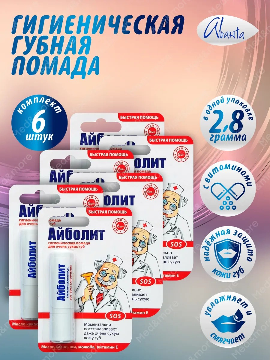 Avanta Aibolit SOS-Restoration Lipstick, 2.8 g, 6 pcs, is a reliable care product for the whole family, combining effectiveness, safety, and natural ingredients.