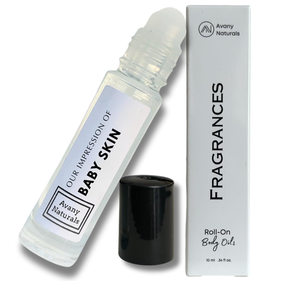 Introducing Baby Skin, the perfect roll-on perfume oil designed with your little one in mind. This gentle, unisex fragrance features a soft, warm vanilla sugar scent that wraps your baby in a comforting embrace, making every moment feel special. Available in convenient sizes of 10ml and 30ml, Baby Skin is perfect for on-the-go parents and can easily be slipped into a diaper bag or purse. This delightful scent is free from harsh chemicals, ensuring it's safe for delicate skin while providing a touch of sweetness that both boys and girls will adore. Create cherished memories with Baby Skin, where every roll-on delivers a soothing aroma. Embrace the warmth of childhood with this enchanting fragrance that's as soft as your baby's skin.VALUE FOR MONEY – Arrives in an elegant packaging, which makes a great gift idea for birthdays, anniversaries, party favors, self-care routine, or as a thoughtful surprise for man, women, teen, or anyone who loves captivating scents. A must have discovery box for those seeking designer version scents at an affordable price. TSA-TRAVEL FRIENDLY – Housed in a modern, glass bottle with leak-proof rollerball, the TSA approved size glides on effortlessly and fits perfectly in your purse, pocket, car, or makeup bag for everyday use. Our rollerball bottle offers quick absorbing oil that effortlessly glides scent layering for on the go touch ups that lasts for hours. FRAGRANCE LAYERING – Each bottle delivers favorite notes that unfold with time—elegant top, heart, and base main accords that offer longevity designed to excite the senses and nourish the skin. From warm earthy musky accords to fresh, floral, and intoxicating perfumery scents that are timeless and make you smell good all day long. CLEAN ETHICAL BEAUTY – Crafted in small batches with vegan, phthalate-free, paraben-free, and cruelty-free ingredients. Our pure, alcohol-free formula is made in USA and designed for those who appreciate clean, premium personal care and good hygiene. AMAZING SCENTS – Our best selling concentrated oil based fragrances offers long-lasting projection that lingers for a duration of hours, making a powerful blend of scents that are aromatic, woody, clean, fresh, floral, vanilla and oud aromas designed to smell good and attract.
