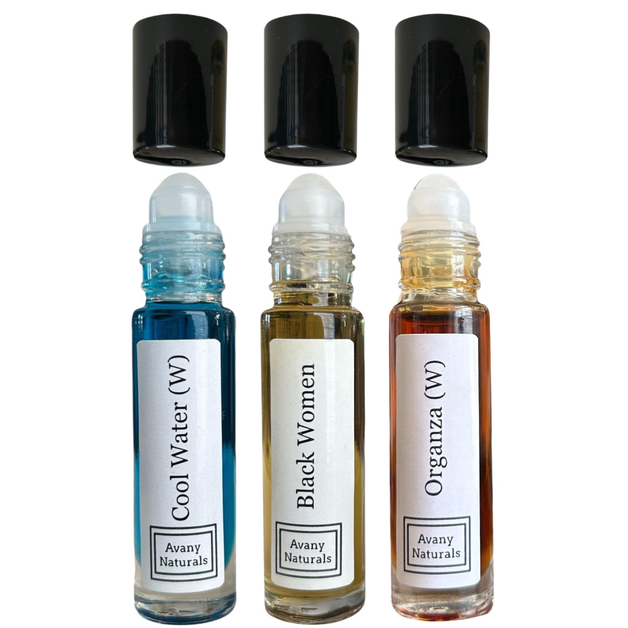 Avany Naturals Set Of 3 Women Type Fragrance Oil - Perfume Inspired Cool Water Black Organza - Womens Roll On Body Oil Alcohol Free 10ml