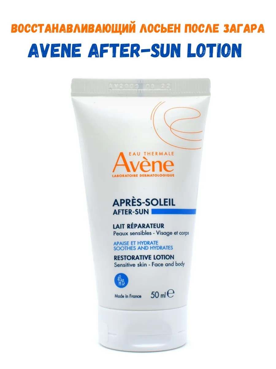 Avene After-sun Lotion - Лосьон восстанавливающий после загара для детей и взрослых, который увлажняет, успокаивает и восстанавливает чувствительную кожу после пребывания на солнце. / Мгновенный освежающий эффект. 98% ингредиентов натурального происхождения. / Этот лосьон после загара мгновенно успокаивает чувствительную кожу после пребывания на солнце. Он также обеспечивает длительное увлажнение до 48 часов. Его кремовая, тающая текстура оставляет на коже освежающий эффект. / Формула, обогащенная термальной водой Avene и антиоксидантами, а также маслом жожоба, ухаживает и восстанавливает кожу. Подходит для всей семьи: взрослых и детей от 2-х лет. / Его экологичная упаковка изготовлена из 100% переработанного пластика, пригодного для вторичной переработки, что обеспечивает бережное отношение к окружающей среде. / Преимущество: Кремовая, тающая текстура с мгновенным освежающим эффектом. / Свойства: -Успокаивает: обеспечивает ощущение свежести и комфорта после пребывания на солнце; -Увлажняет: увлажняет и питает кожу; -Восстанавливает: обогащен антиоксидантами и маслом жожоба. Восстанавливает кожный барьер. / Подходит для частого использования. Способ применения: Обильно наносите лосьон на чистую сухую кожу лица и/или тела после пребывания на солнце.